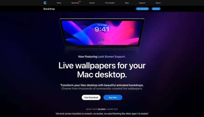 Add stunning live wallpapers to your Mac desktop. Thousands of 4K scenes, smooth multi-display playback, low CPU use, and Lock Screen support.