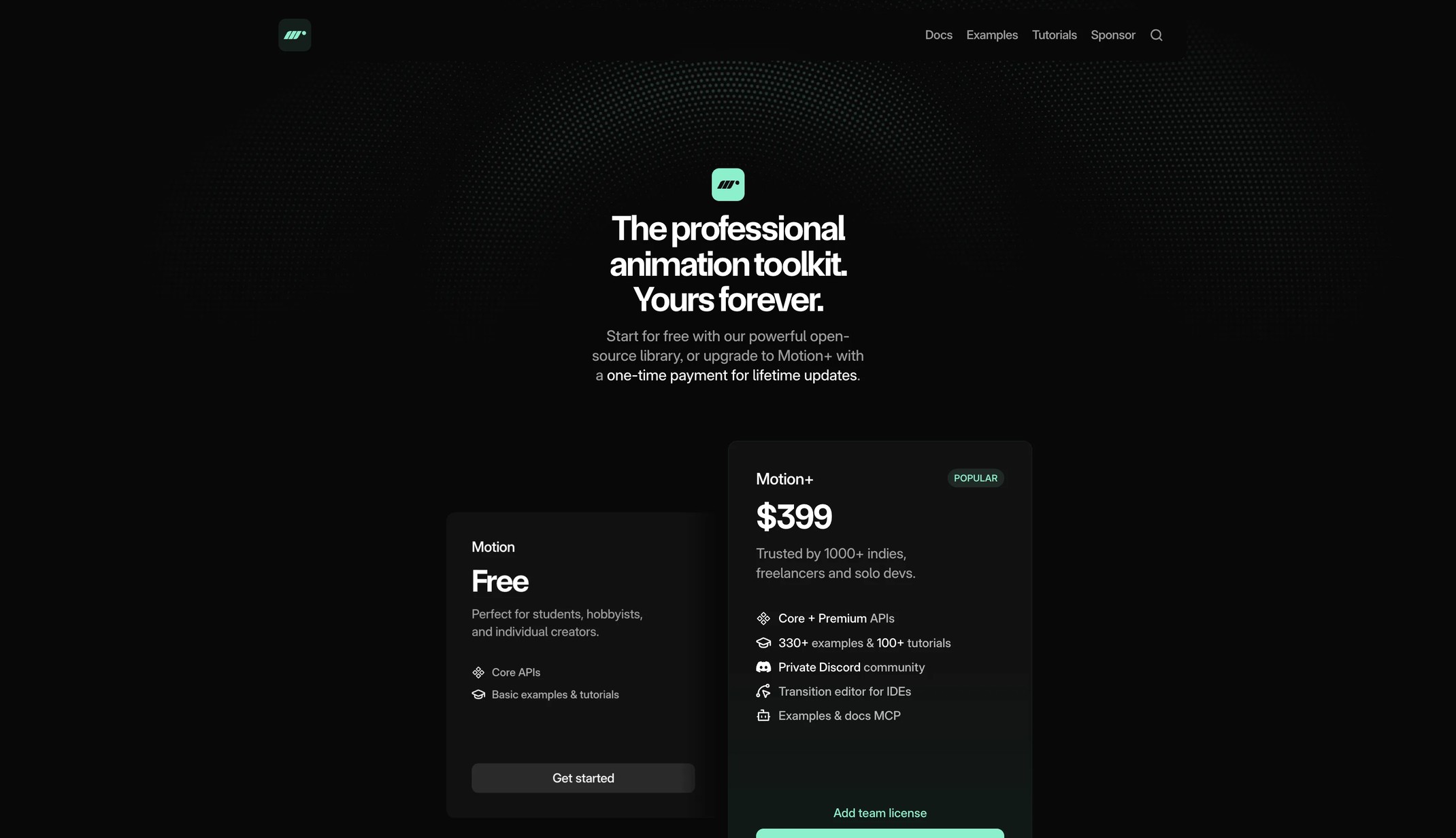Motion (prev Framer Motion) is a fast, production-grade web animation library for React, JavaScript and Vue. Build smooth UI animations with examples, tutorials, and a tiny footprint.