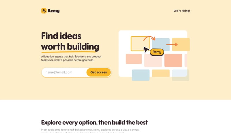 Remy is 24/7 AI product design sidekick that specializes in visual ideation and concept exploration. Rise above the AI slop and build the right product, faster.