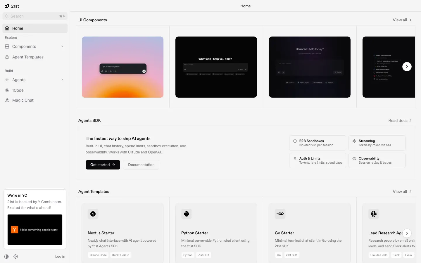 Ship AI-powered products faster with 21st Agents SDK, open-source UI components, and developer tools built for the agentic internet.