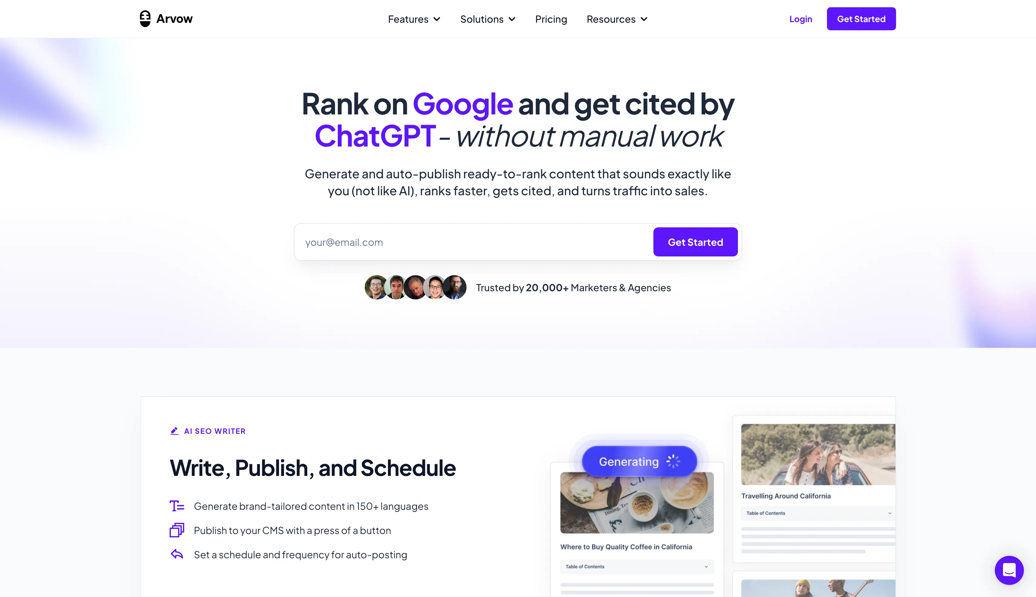 The best AI SEO writing software for LLMs and Google. With an AI article writer, automatic blogging tool, AI SEO agents, and much more. Generate high-quality SEO content with AI that ranks on search engines.