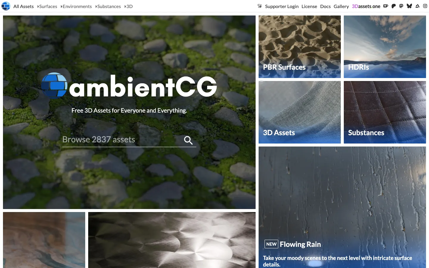 Free 3D Assets Never Looked This Good! Get 2000+ PBR Materials, HDRIs and more for free under the CC0 Public Domain license.