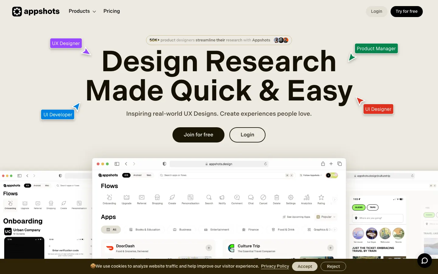 Appshots showcases mobile app screenshots and designs for inspiration, helping developers and designers discover creative UI examples and visual references for their own projects.