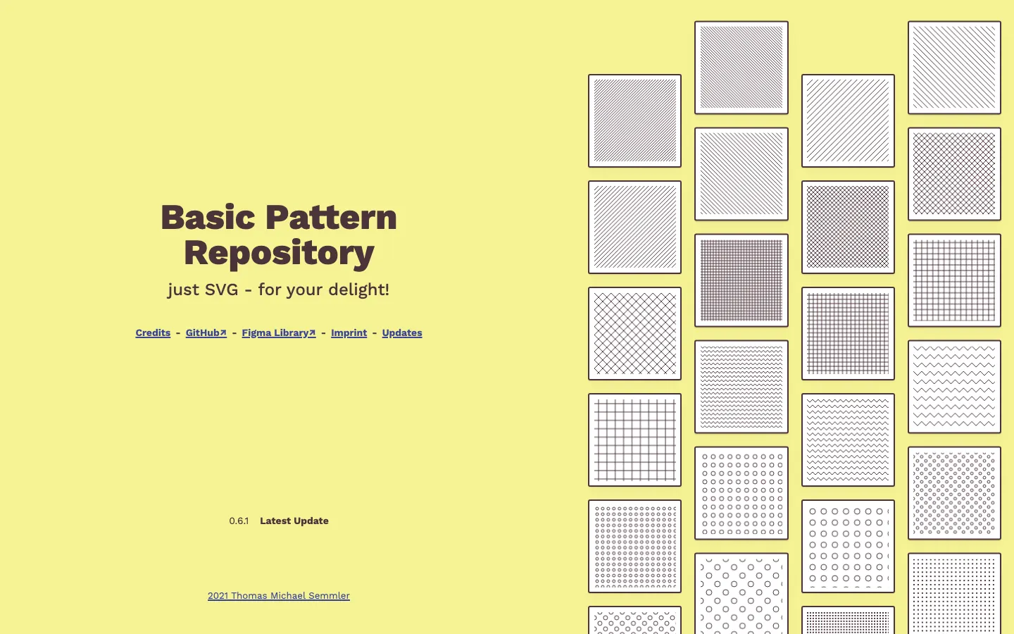 A collection of hand-coded SVG <pattern>'s, ready to be used in inline SVG or however you like.