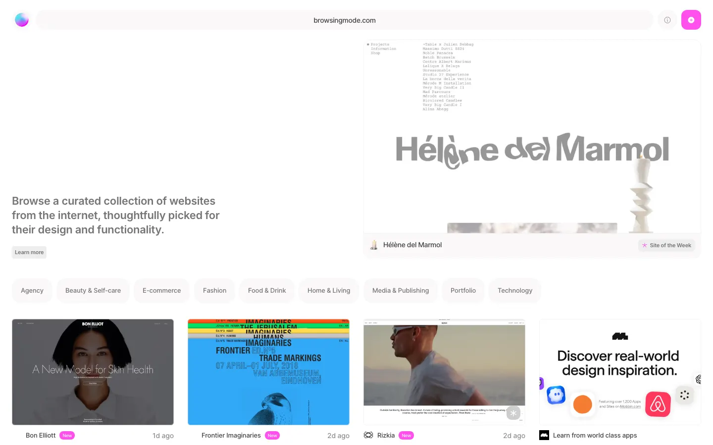 Browsing Mode is an online space dedicated to sharing our favourite internet finds and providing a creative resource for casual browsers and creatives alike. Browse hand-picked website design inspiration and more.