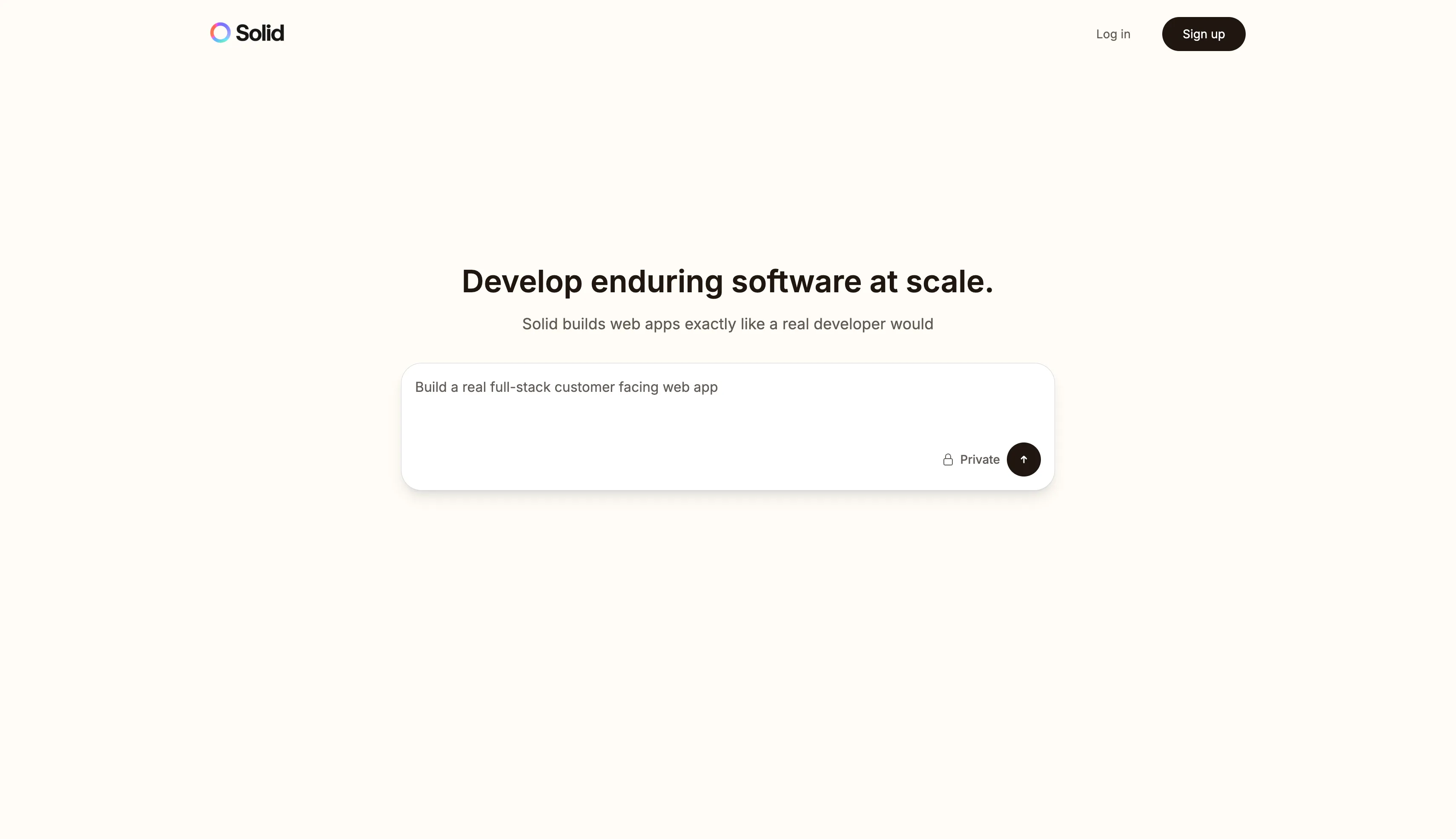 Solid builds webs ready to use, instantly. Not Supabase mockups.
