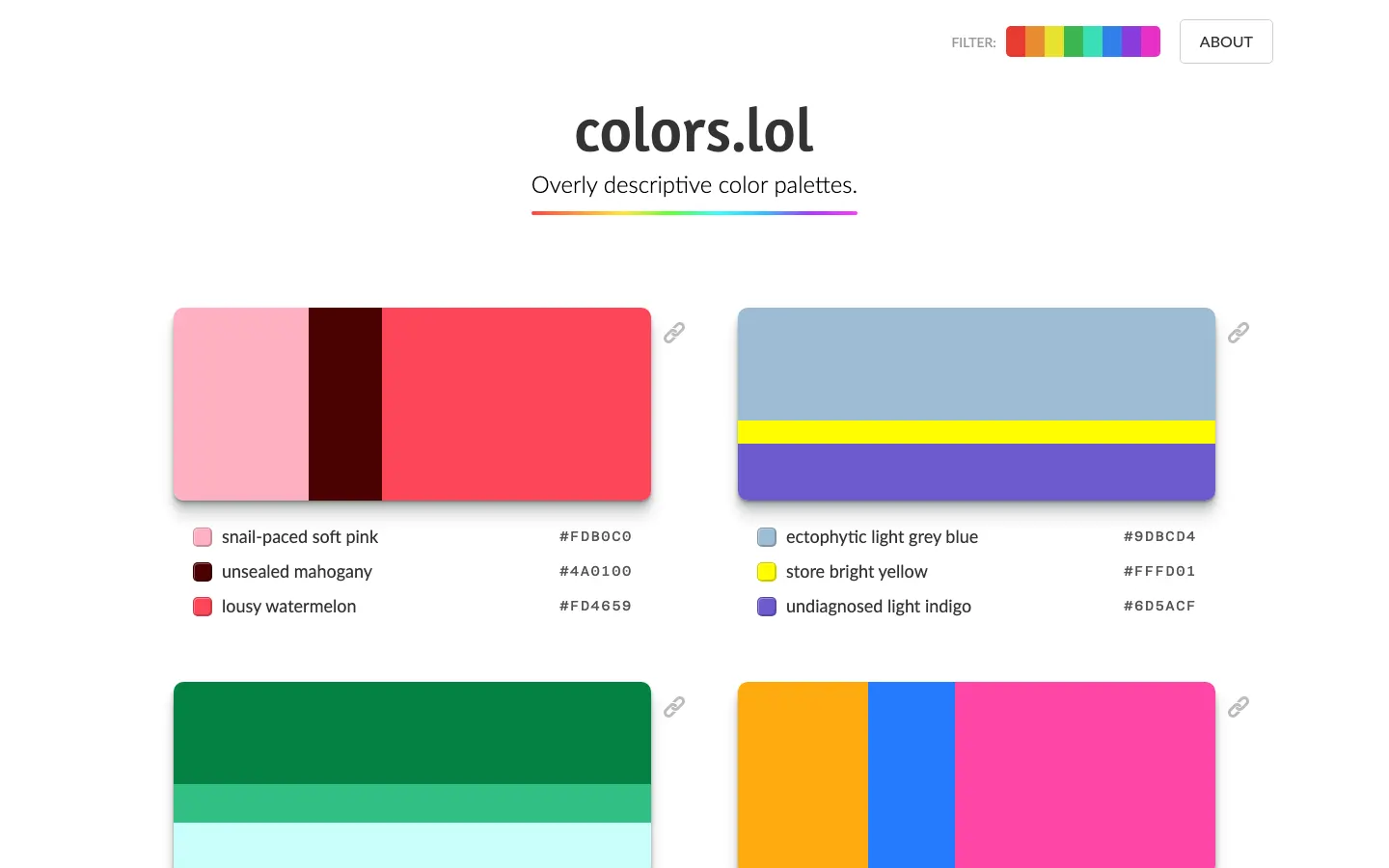 colors.lol - Overly descriptive color palettes
