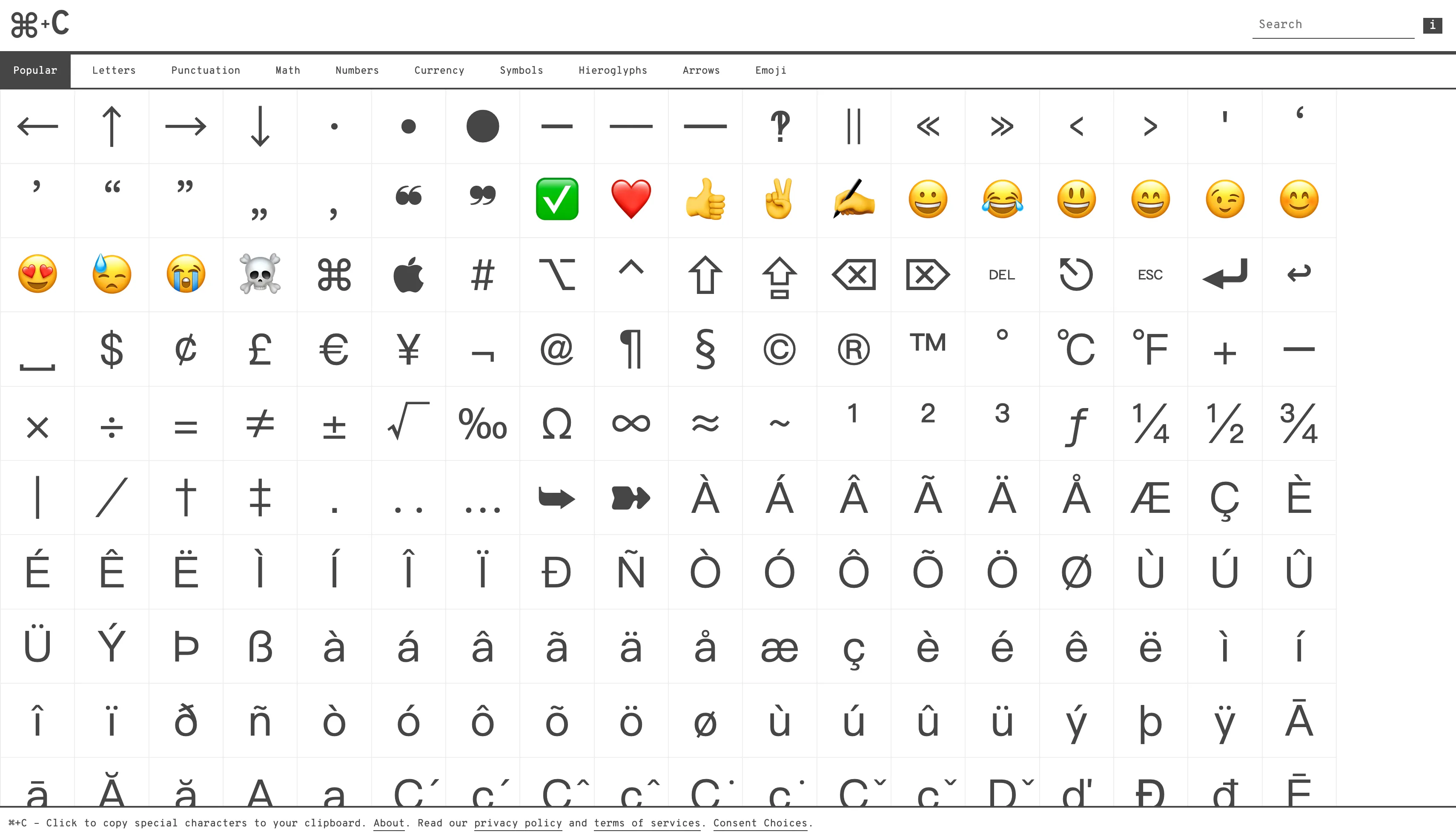 A basic app that allows you to find and copy special characters to your clipboard. Click or tap on a character and it will be copied to your clipboard.