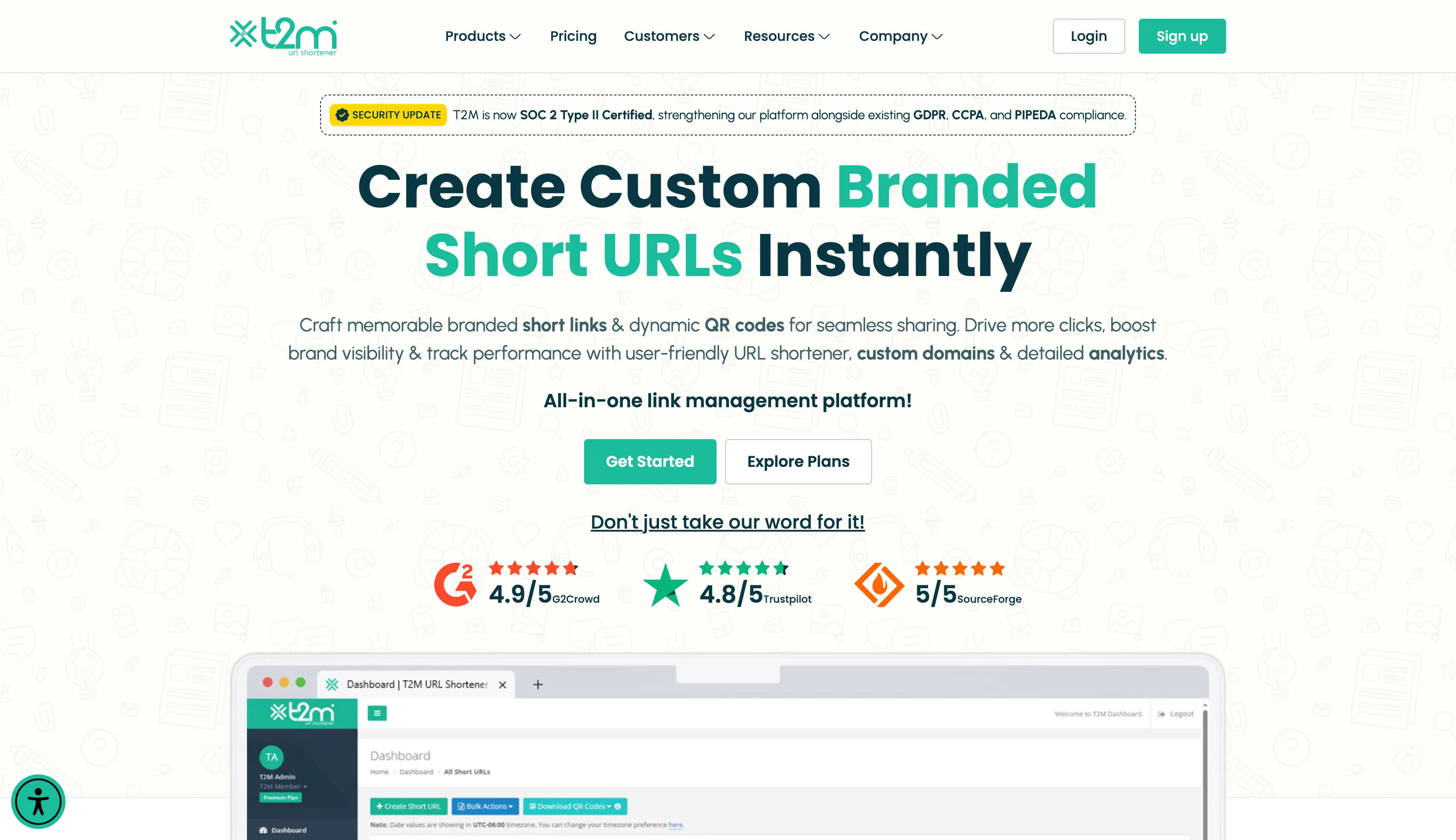 Custom URL Shortener, Branded Domain, QR Code Generator | T2M
