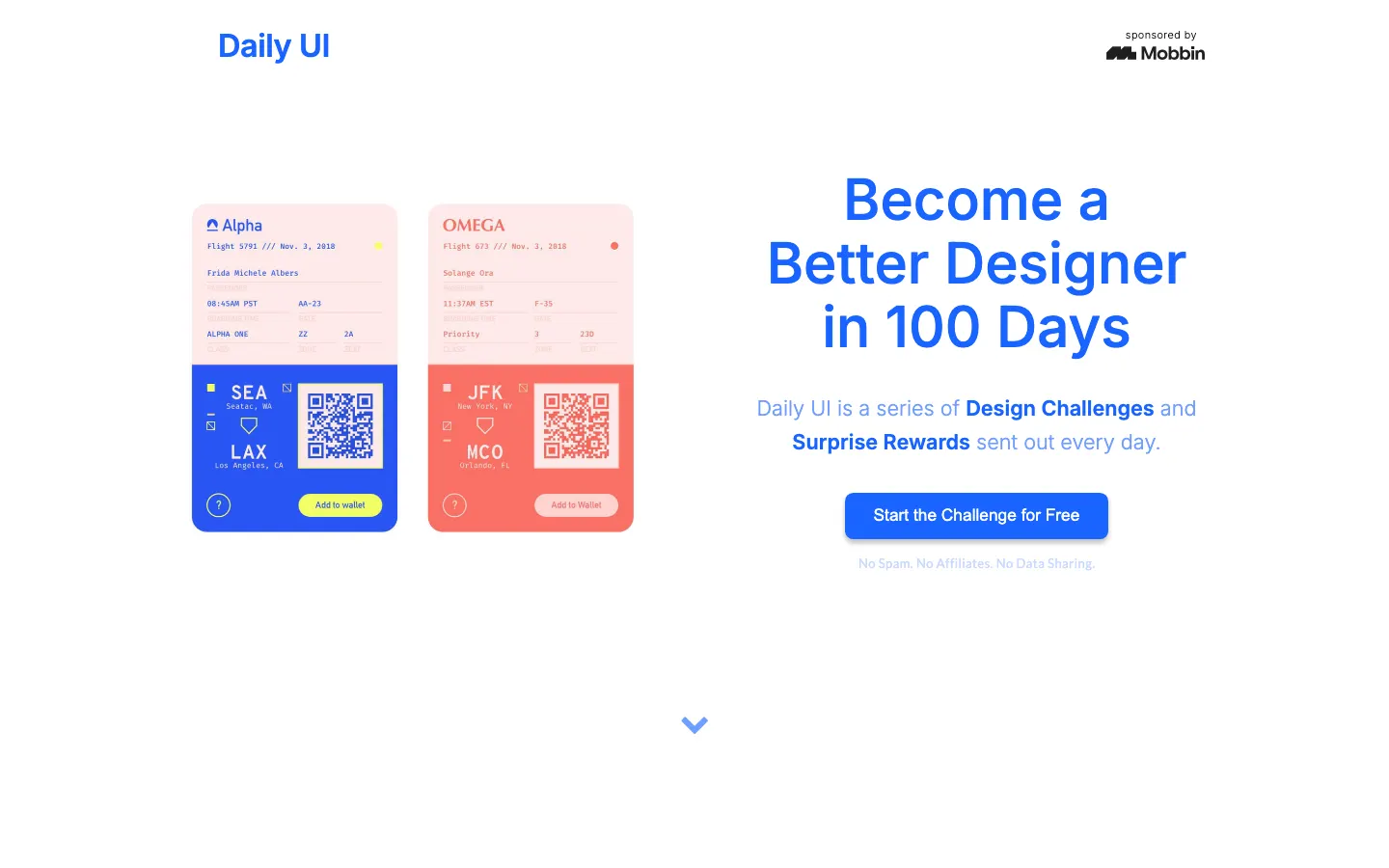 Daily UI design challenge. Become a better designer in 100 days. Free design resources.