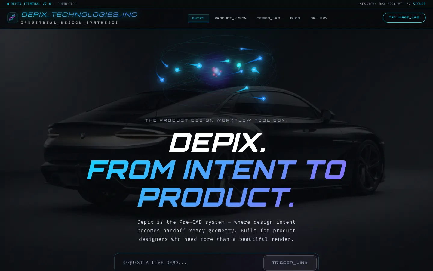 Depix is a product design tool that turns ideas into photorealistic renders and editable 3D models — no sketches, prompts, or CAD required. Faster than KeyShot, smarter than Vizcom.