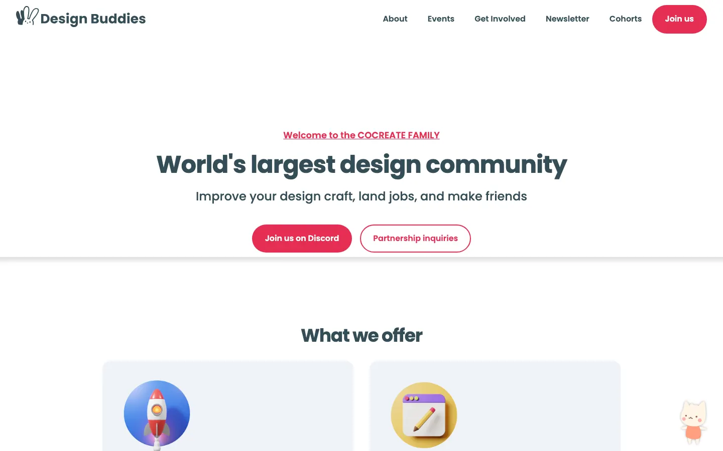 Design Buddies is a community where you level up your design career. Make lifelong friends, improve your design craft, and land jobs. We have free resources, events, design challenges, a job board, fun perks, and more.