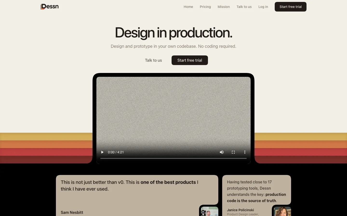 Design and prototype in your own codebase. No coding required. Dessn lets product teams design features directly in production.