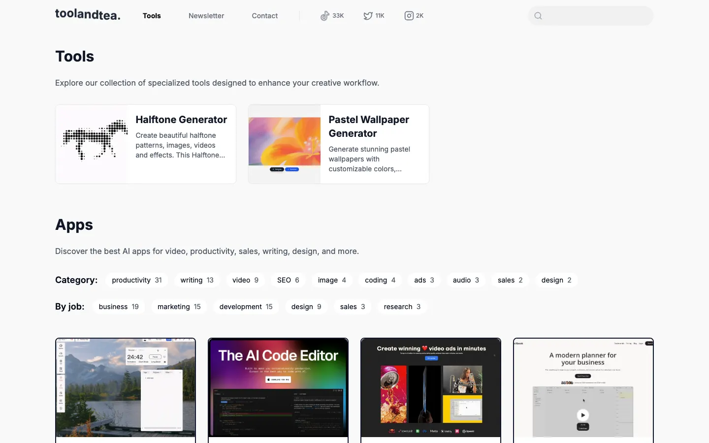 Explore our curated collection of AI tools and apps designed to enhance your productivity, creativity, and workflow. Find the perfect tools for your specific needs.