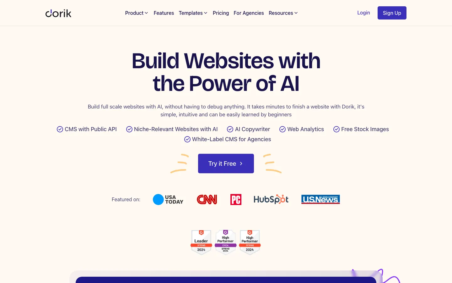 Create your stunning website with ease using Dorik AI Website Builder. Benefit from user-friendly design tools, advanced business solutions, AI tools, and powerful SEO features. Start with Dorik for free.