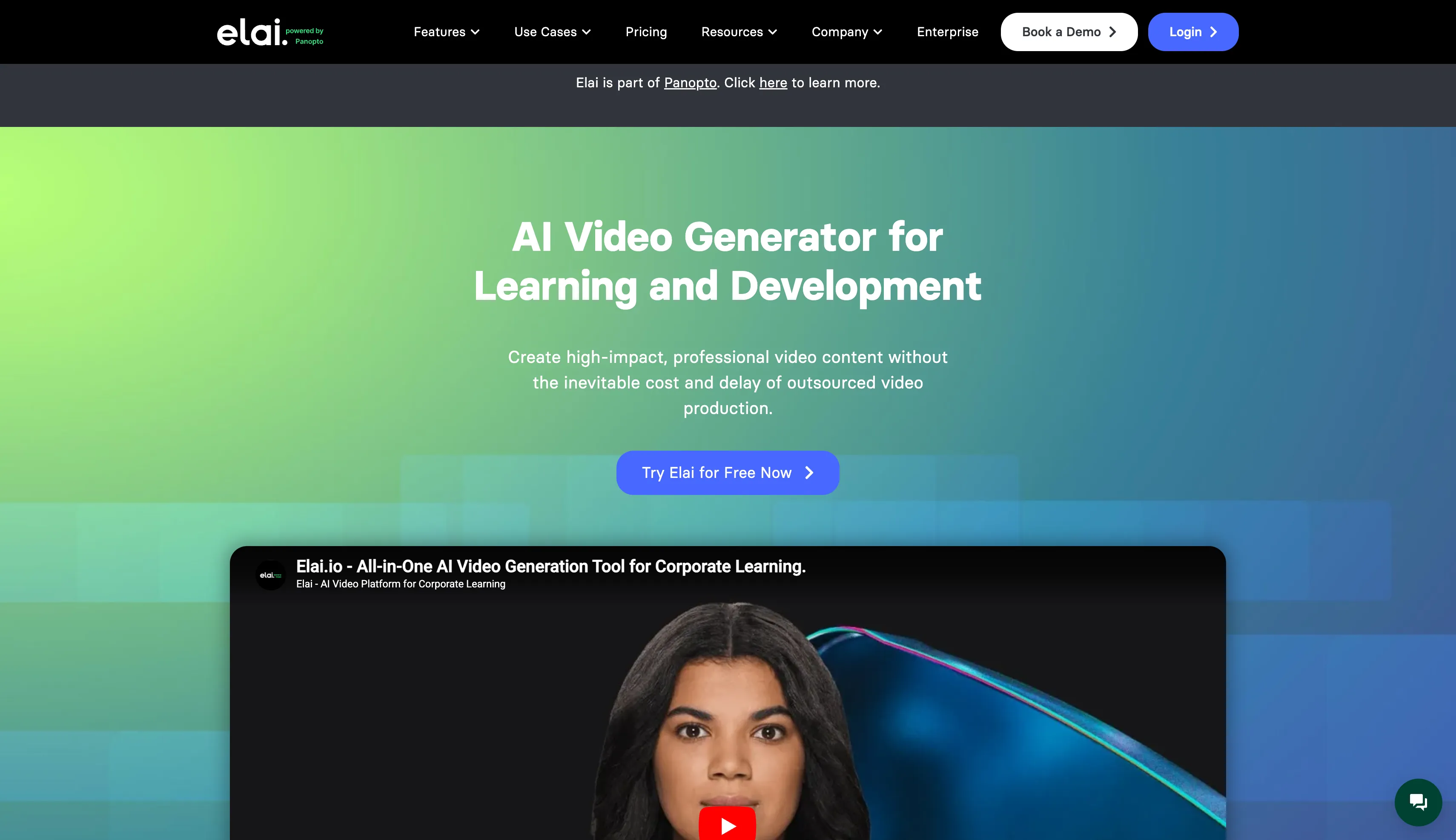 Experience one of the most powerful AI Training Video Generators on the market: Elai, Powered by Panopto. Start creating for free now!