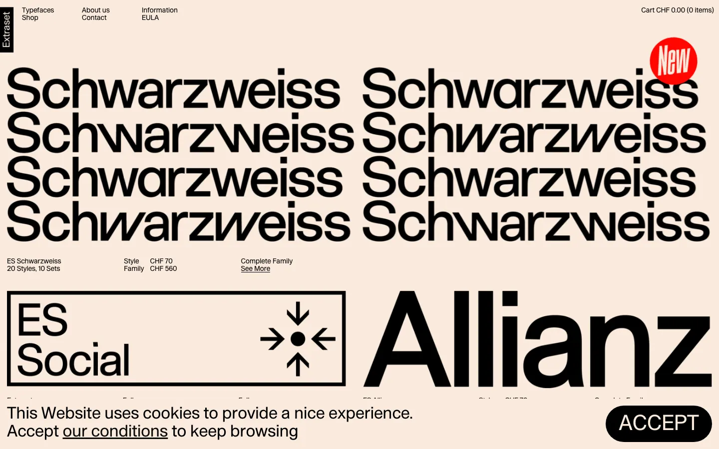 Extraset is an independent Swiss type foundry established in Geneva, jointly led by Alex Dujet (Futur Neue), Xavier Erni (Neo Neo), Roger Gaillard (Cécile + Roger) and David Mamie (TM Todeschini + Mamie). Extraset publishes professional typefaces made by graphic designers for graphic designers.