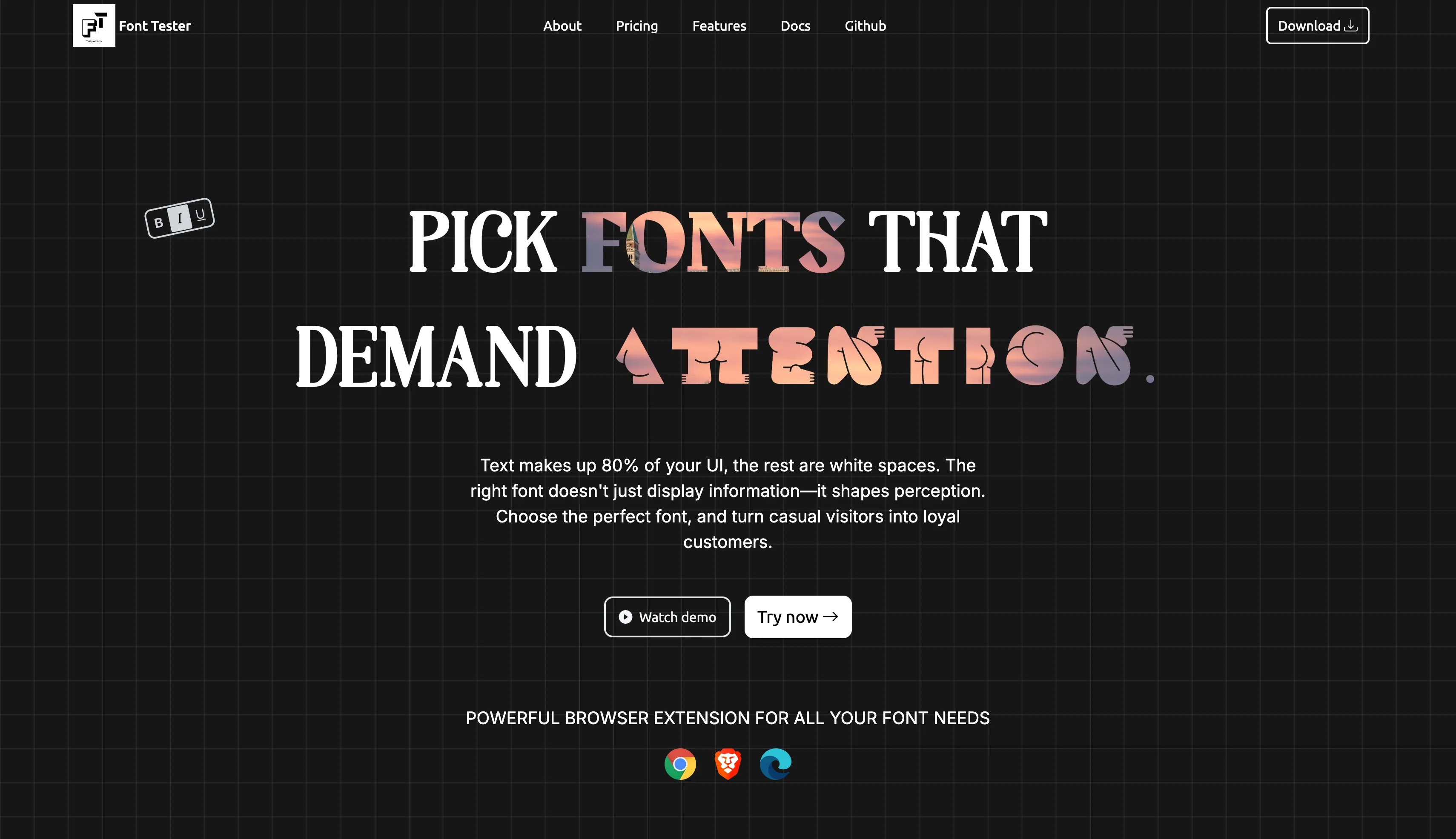 Font Tester is a browser extension to help you preview and compare 1000+ fonts live on any website