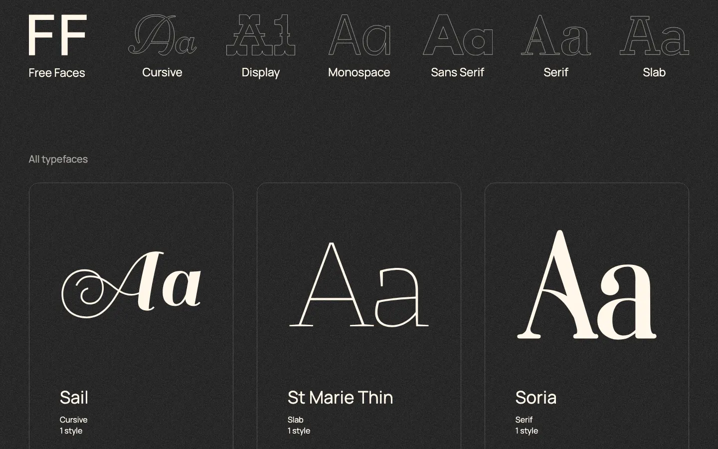This website is a curated collection of typefaces that are available under a variety of free licences somewhere on the interwebs.