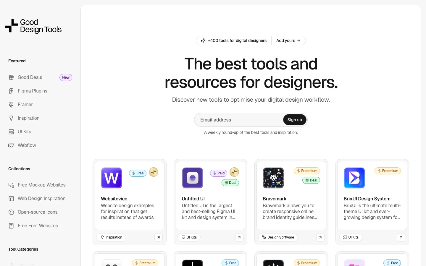 Good Design Tools is a collection of over 400+ of the best tools and resources for UI designers, UX designers, digital designers and graphic designers.