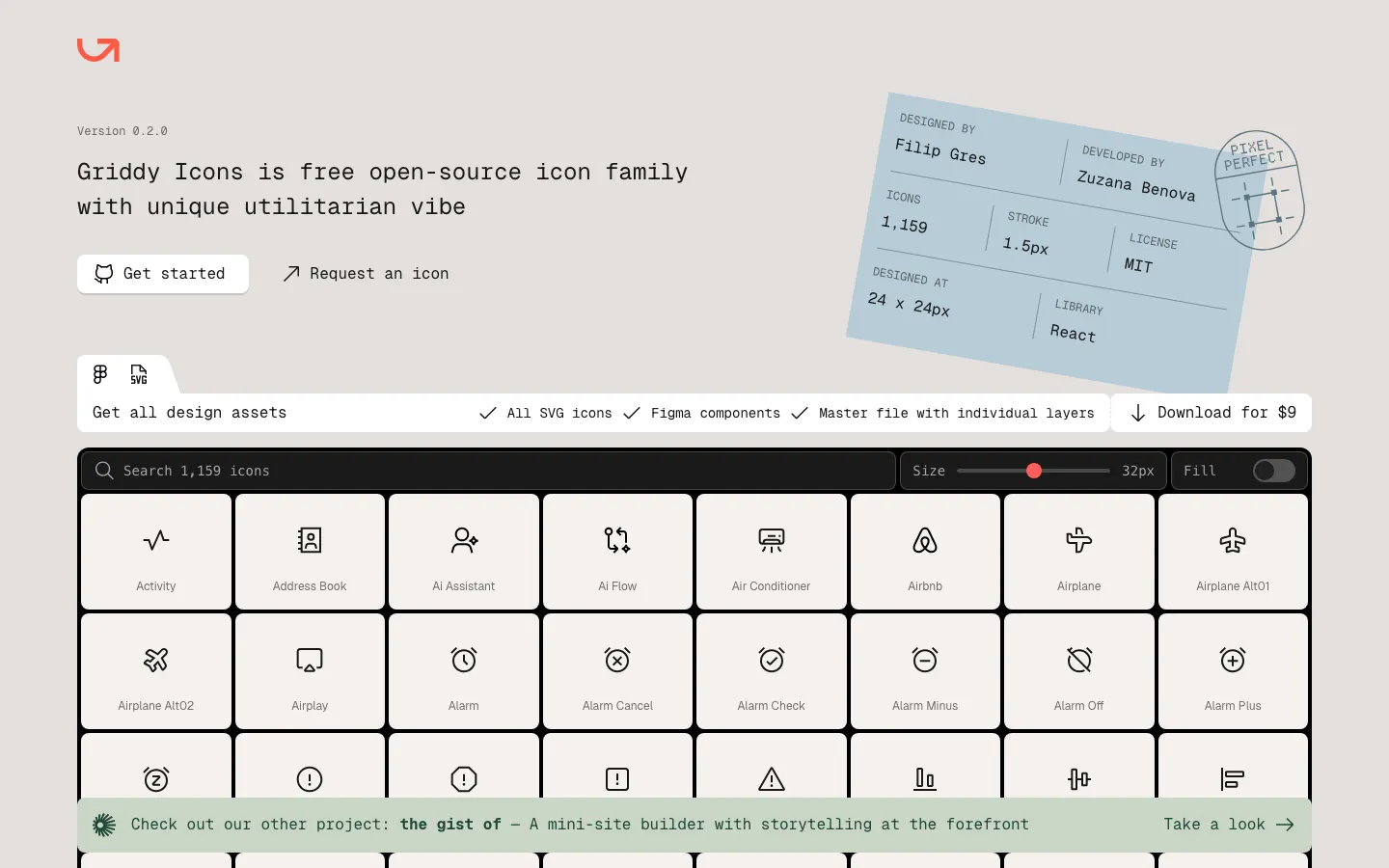 Griddy Icons is free open-source icon family with unique utilitarian vibe