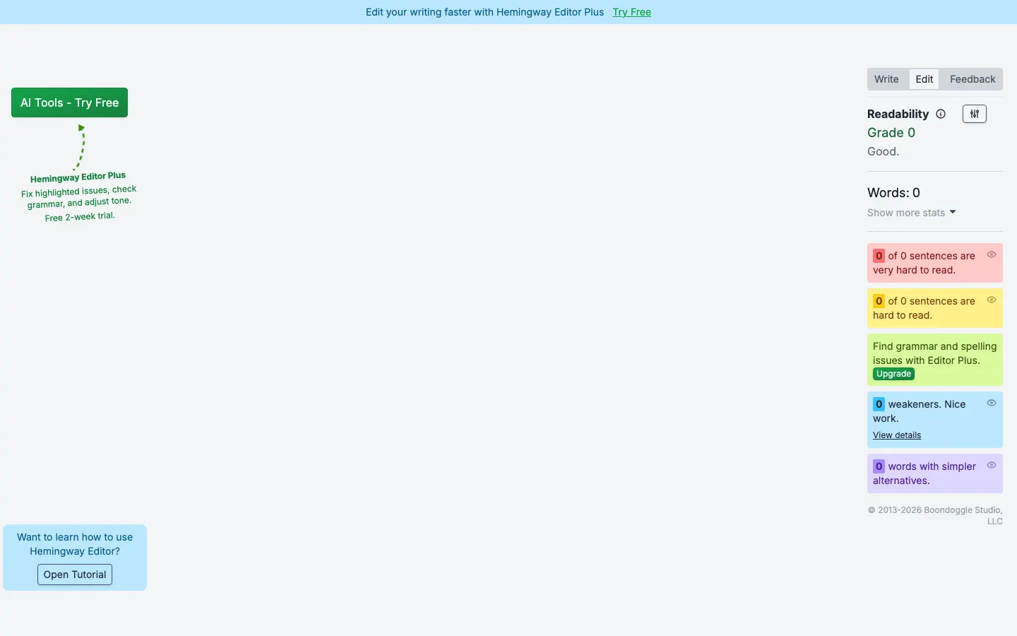 Hemingway Editor makes your writing bold and clear.