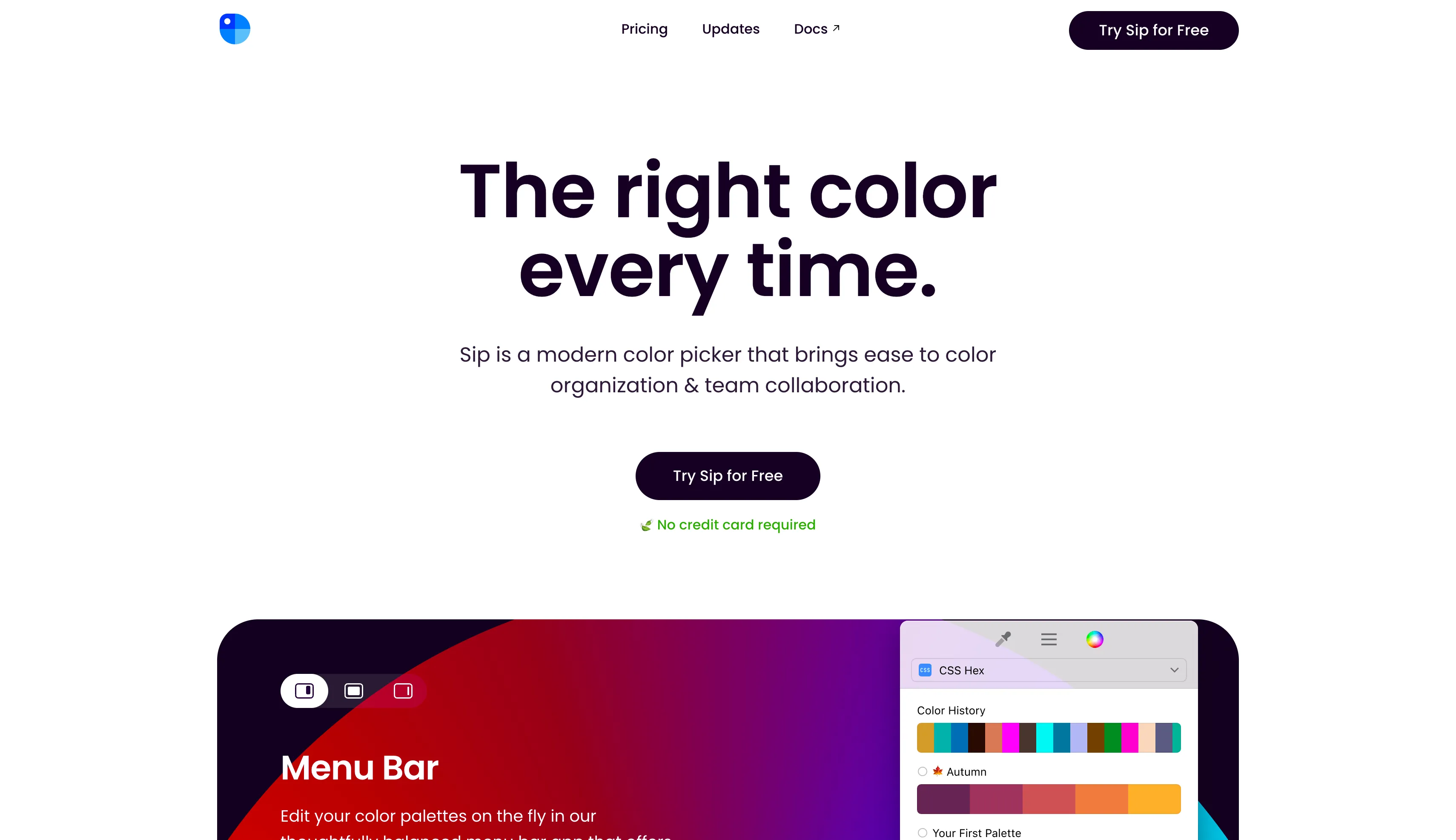 Sip is a modern color picker that brings ease to color organization & team collaboration. Edit your color palettes on the fly in our thoughtfully balanced menu bar app that offers essential functionality without being intrusive.