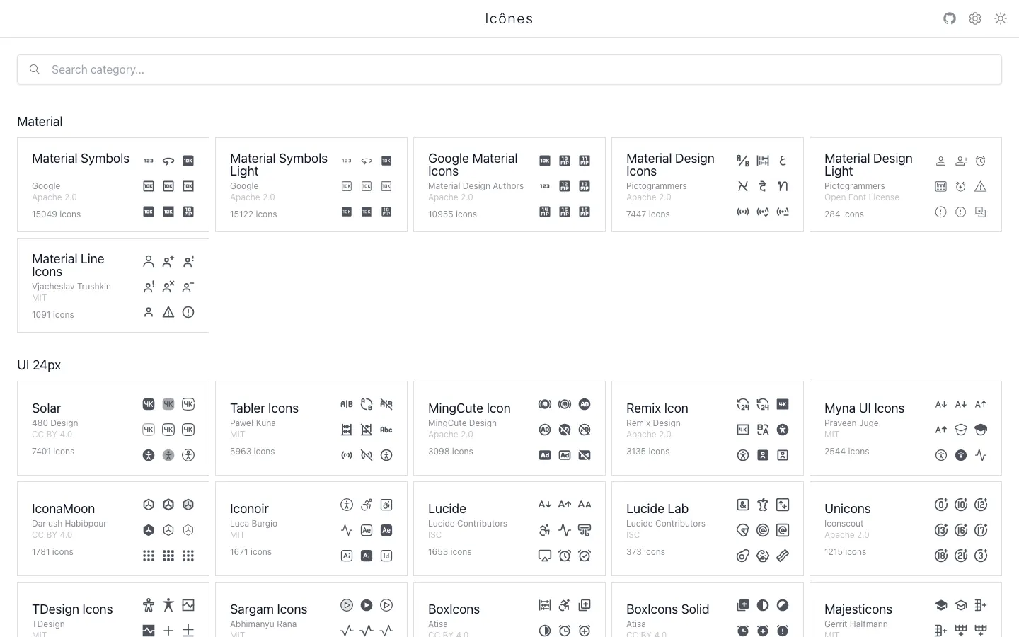 Icônes is a comprehensive icon library offering a wide range of customizable icons for developers and designers. The site provides easy-to-use icon sets that can be integrated into various projects, making it a valuable resource for those looking to enhance their visual designs with scalable vector icons.