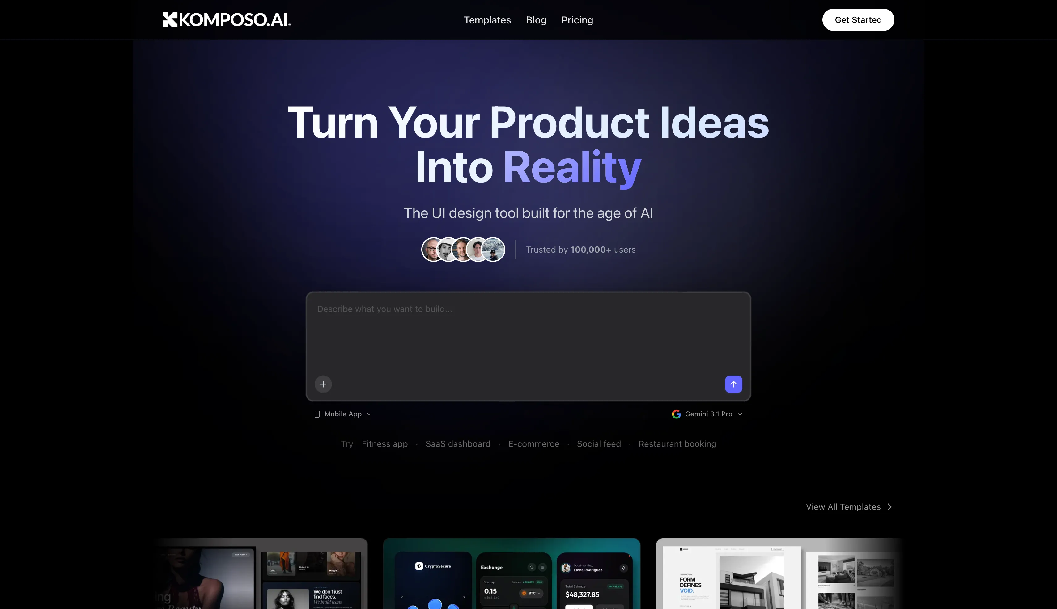 Komposo (formerly CopyCoder) helps founders generate any UI design with AI, customize designs with AI prompts, and export to code instantly. Build landing pages, mobile apps, and SaaS apps. Used by teams at Google, Microsoft, Amazon, and Meta.