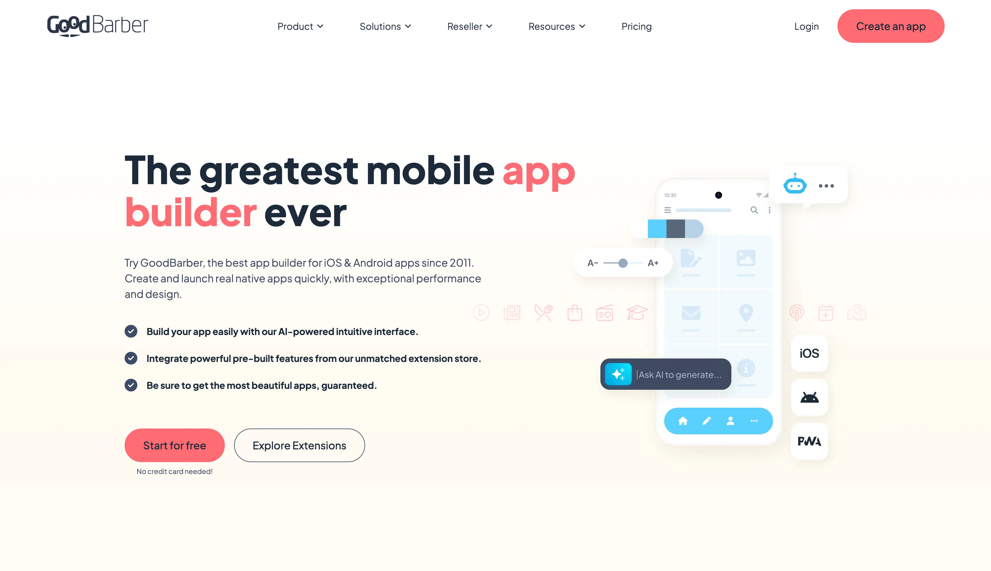 GoodBarber is the leading no-code platform for building high-design native iOS and Android apps for eCommerce brands, content creators app resellers and any other small business. Unlike generic builders, it creates compiled native code, not just web wrappers. AI-powered, GoodBarber helps to build smoother, faster and more powerful apps. Focus on what really matters: stunning design and UX for your users.