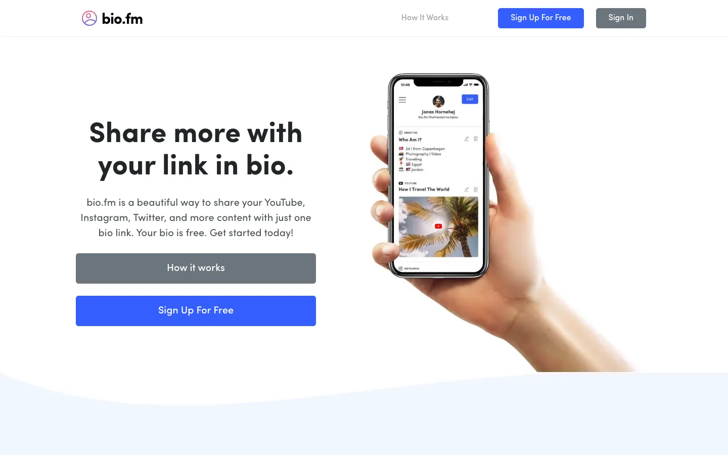The best link in bio solution! bio.fm helps you share almost any type of content you want with your bio link. Try it FREE!