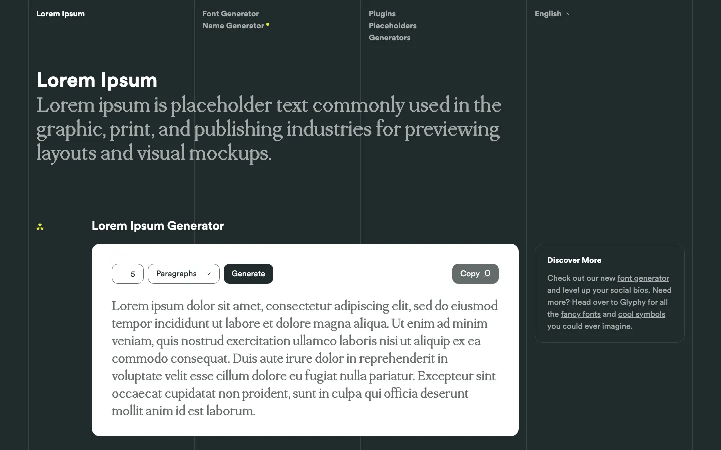 Generate Lorem Ipsum placeholder text for use in your graphic, print and web layouts, and discover plugins for your favorite writing, design and blogging tools. Explore the origins, history and meaning of the famous passage, and learn how Lorem Ipsum went from scrambled Latin passage to ubiqitous dummy text.