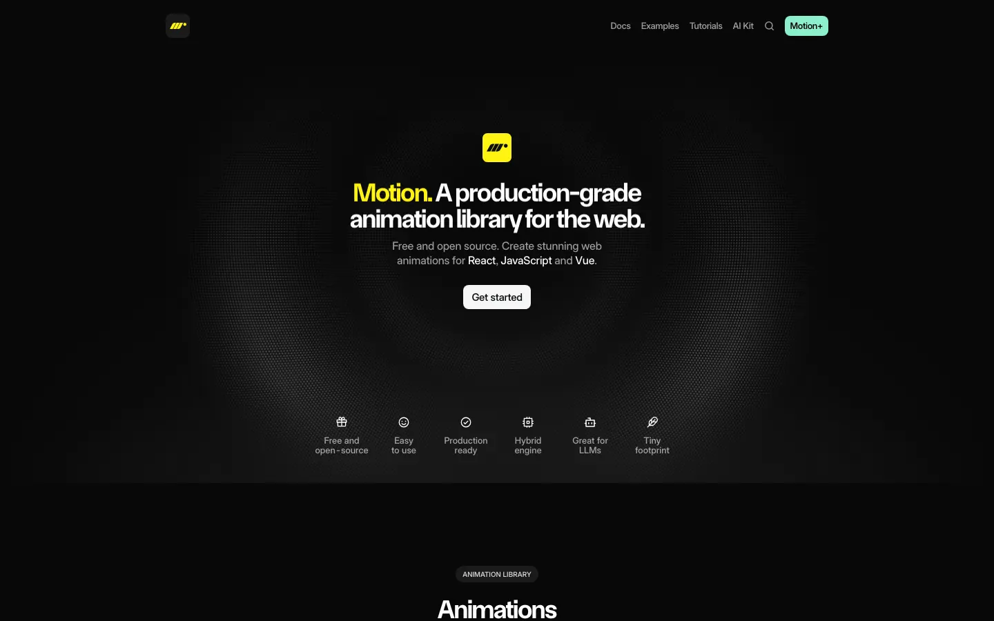 Motion (prev Framer Motion) is a fast, production-grade web animation library for React, JavaScript and Vue. Build smooth UI animations with examples, tutorials, and a tiny footprint.