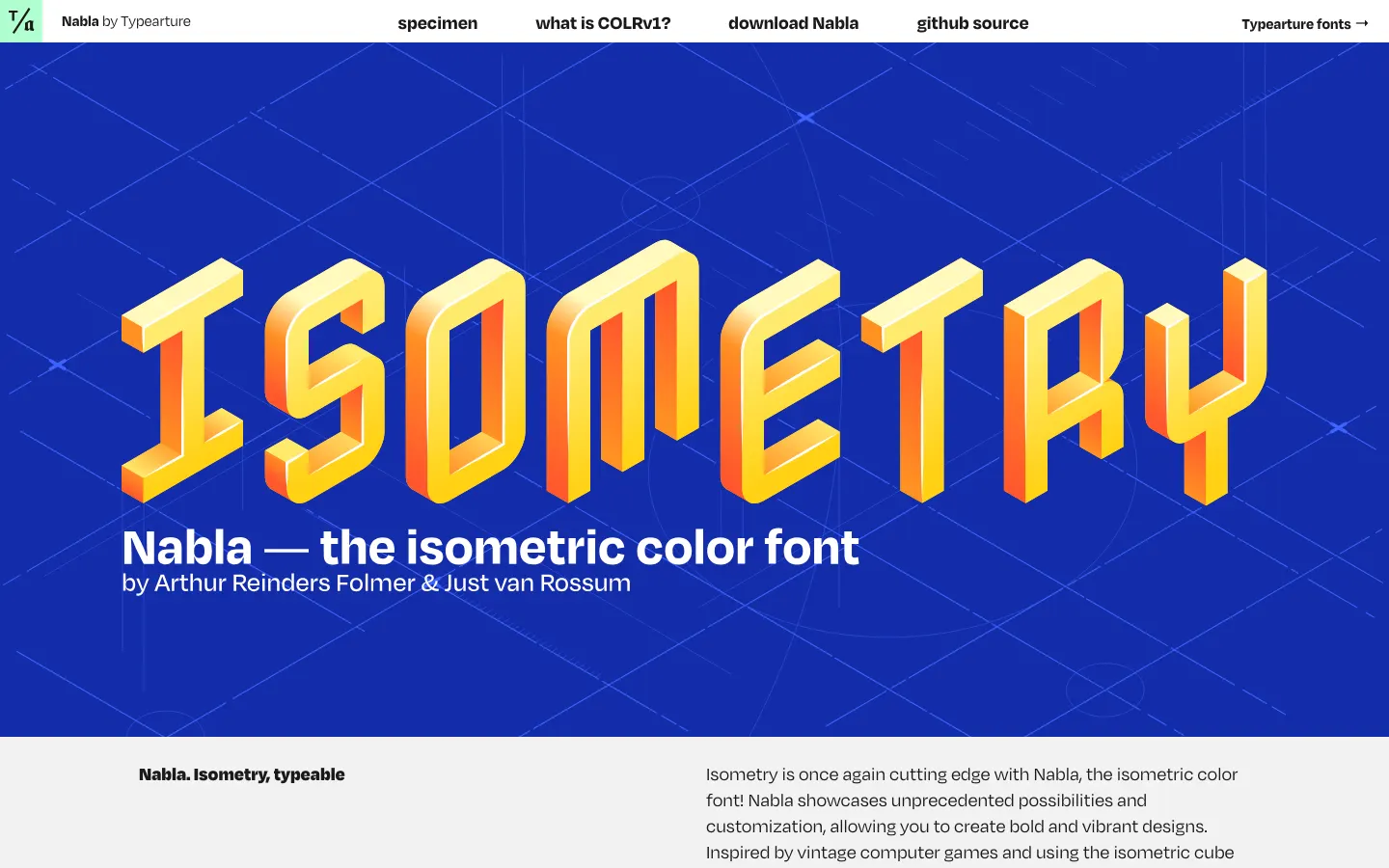 Nabla — the isometric color font by Arthur Reinders Folmer & Just van Rossum