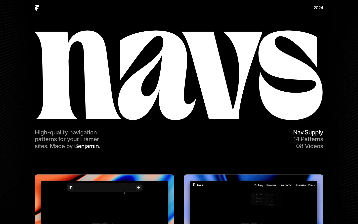 High-quality navigation patterns for your Framer websites. Create mobile menus, desktop menus, auto-collapsing navigations, navigations that hide on scroll, and more. Free to remix. Designed for Framer by Benjamin den Boer.