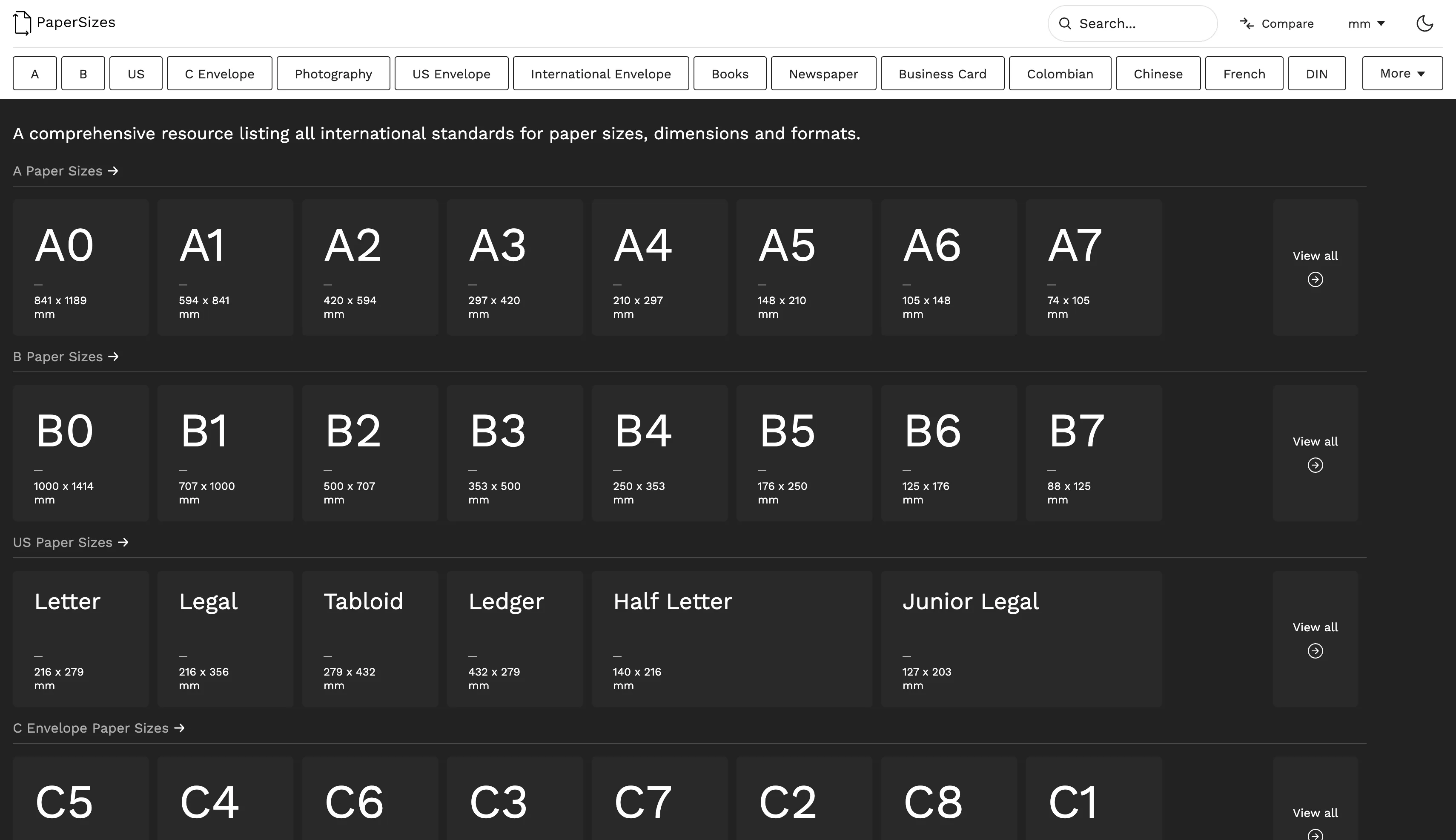 A simple, free, comprehensive resource for finding the international standards for paper sizes in metric and imperial.