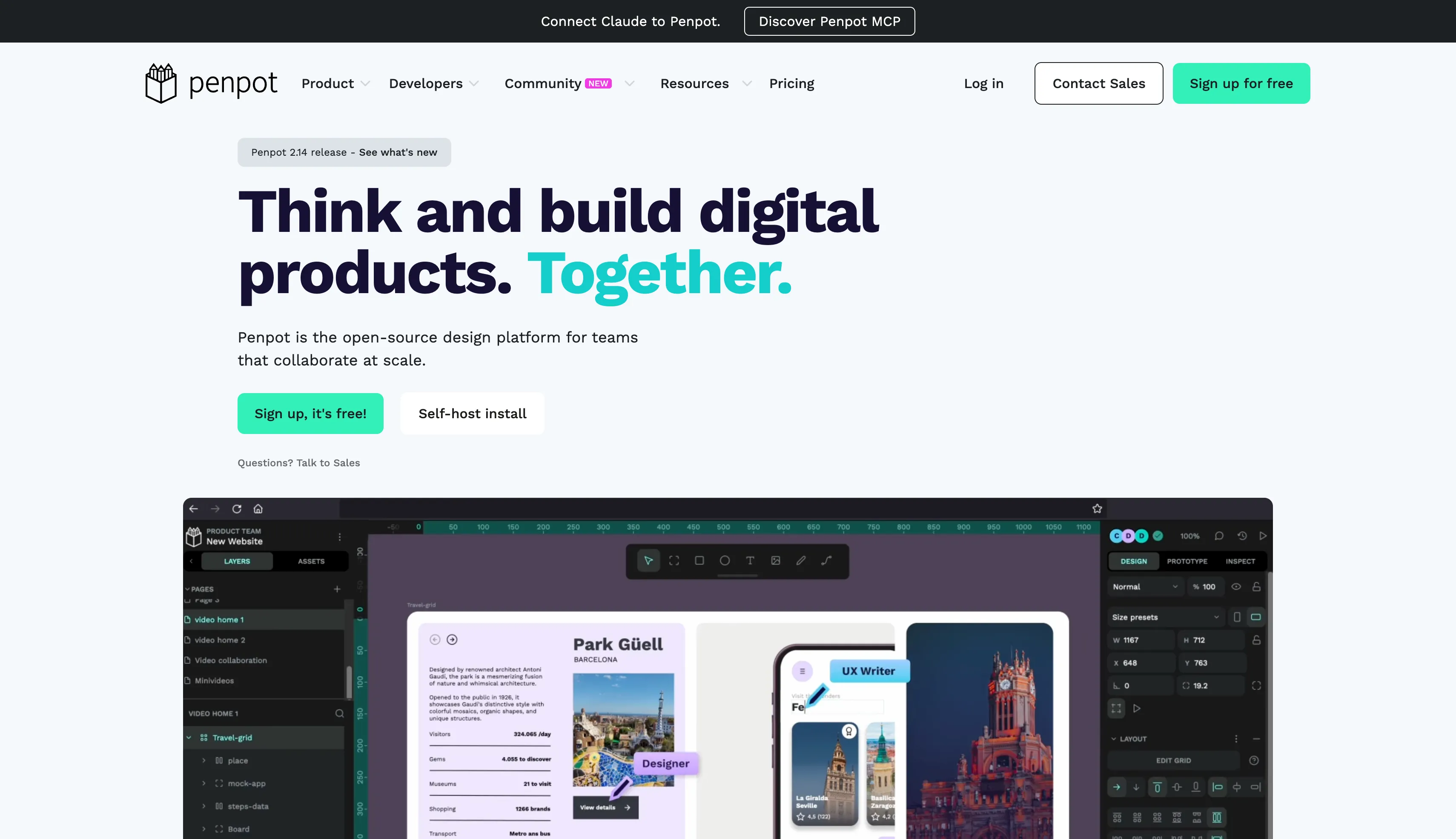 Penpot is the open-source free design software that connects designers and developers with no handoff drama. Prototyping, UI design and code - all in one app.