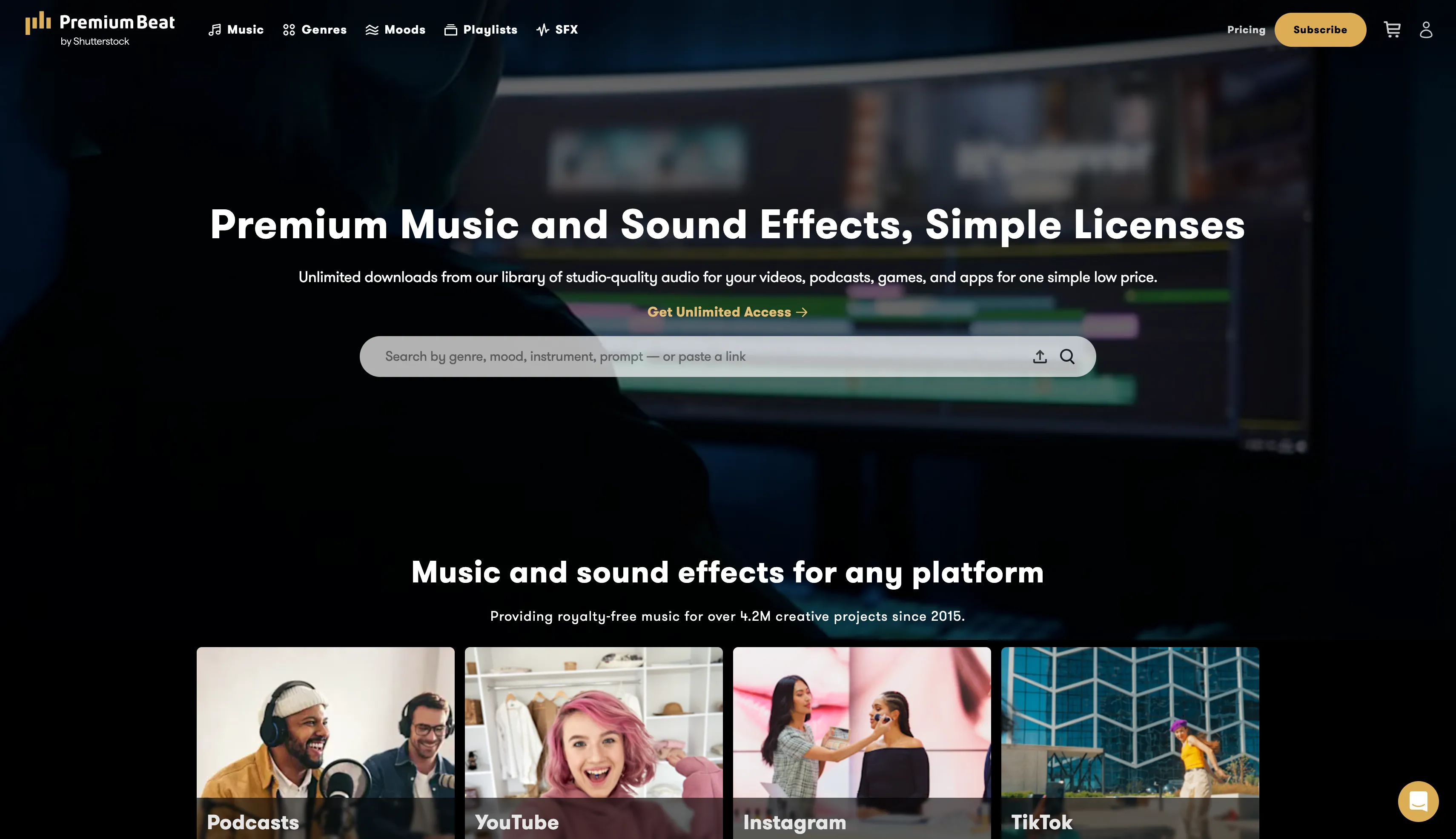 PremiumBeat offers royalty-free music tracks and sound effects for content creators, filmmakers, and advertisers to enhance their projects with high-quality audio assets.