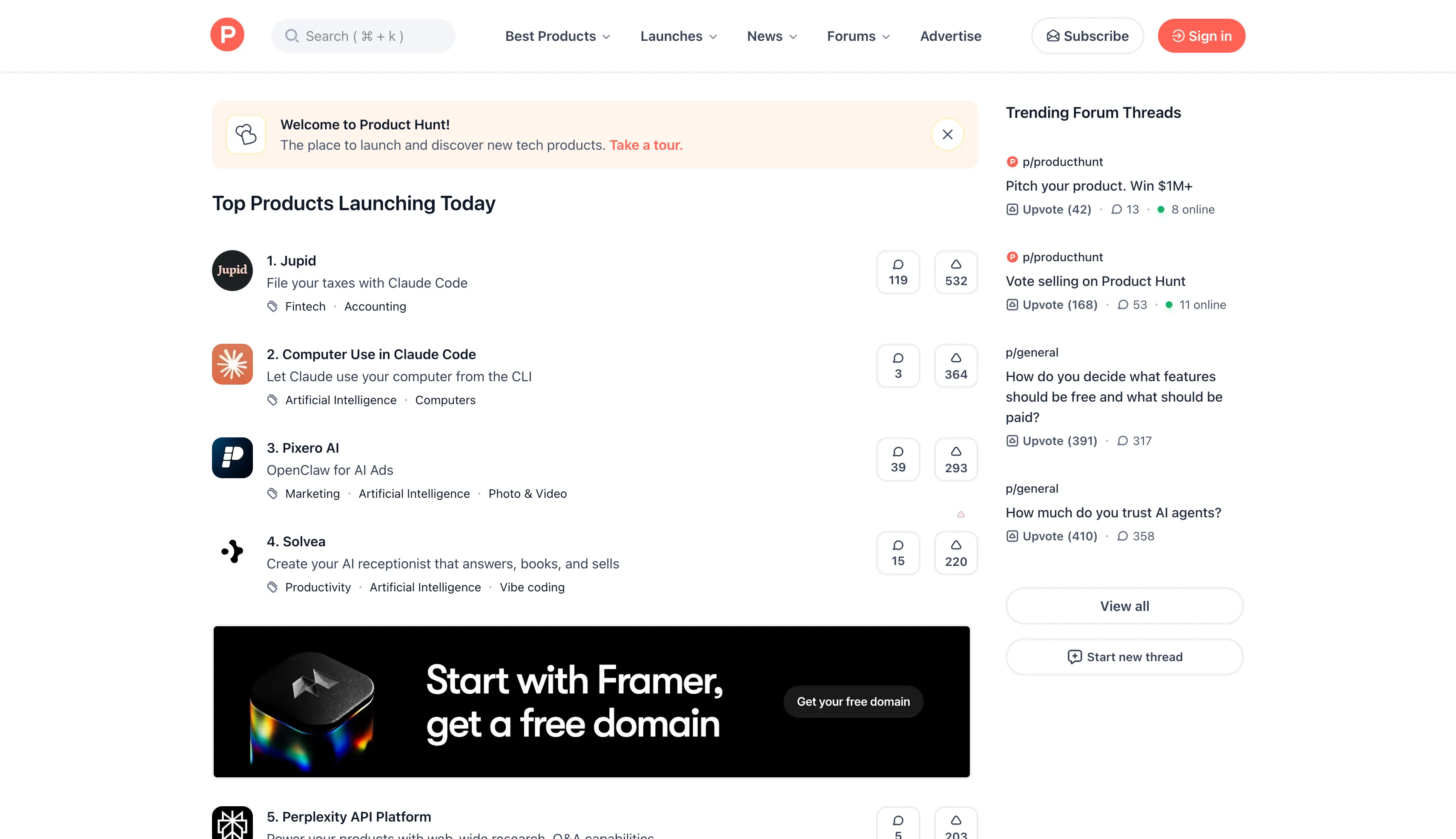 Product Hunt showcases new products daily, featuring tech innovations, apps, and tools, ideal for entrepreneurs, developers, and product enthusiasts discovering the latest digital offerings.