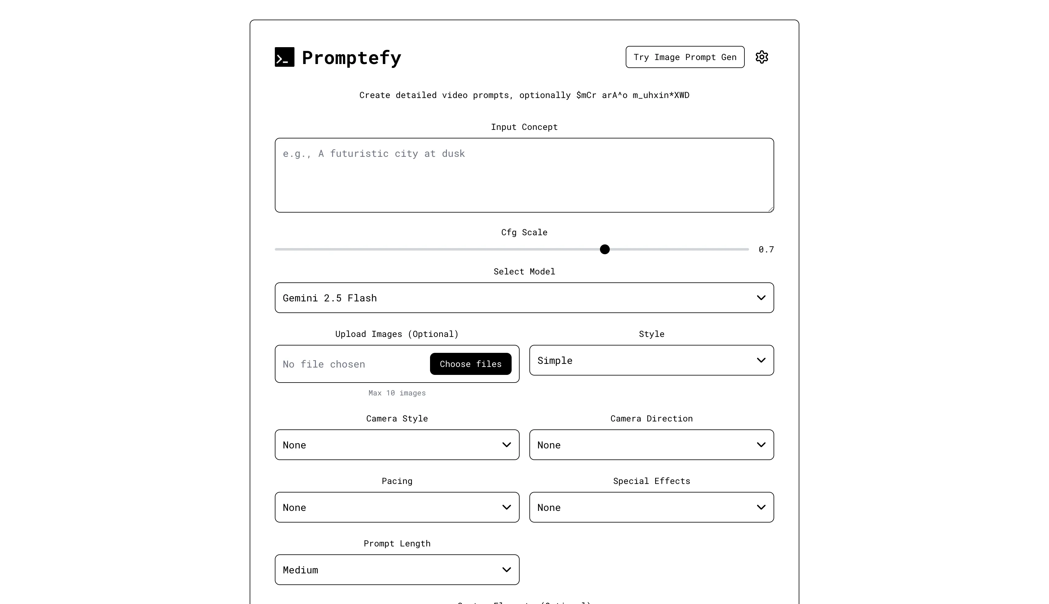 Create detailed video prompts, optionally with image references.