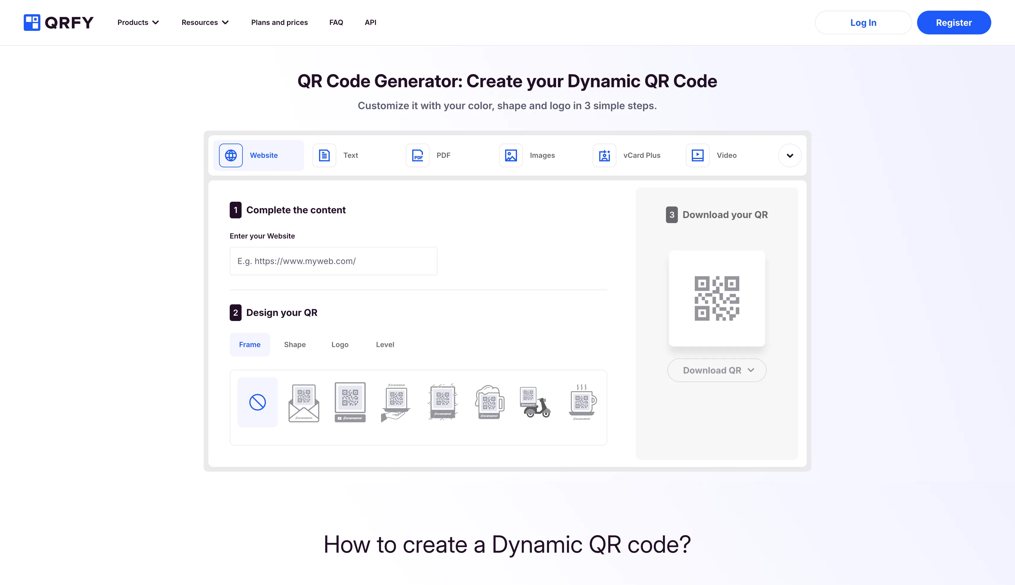 QR Code Generator for Websites, Video, PDF and more. Customize with logo, colors, and frames. Download in high-res.