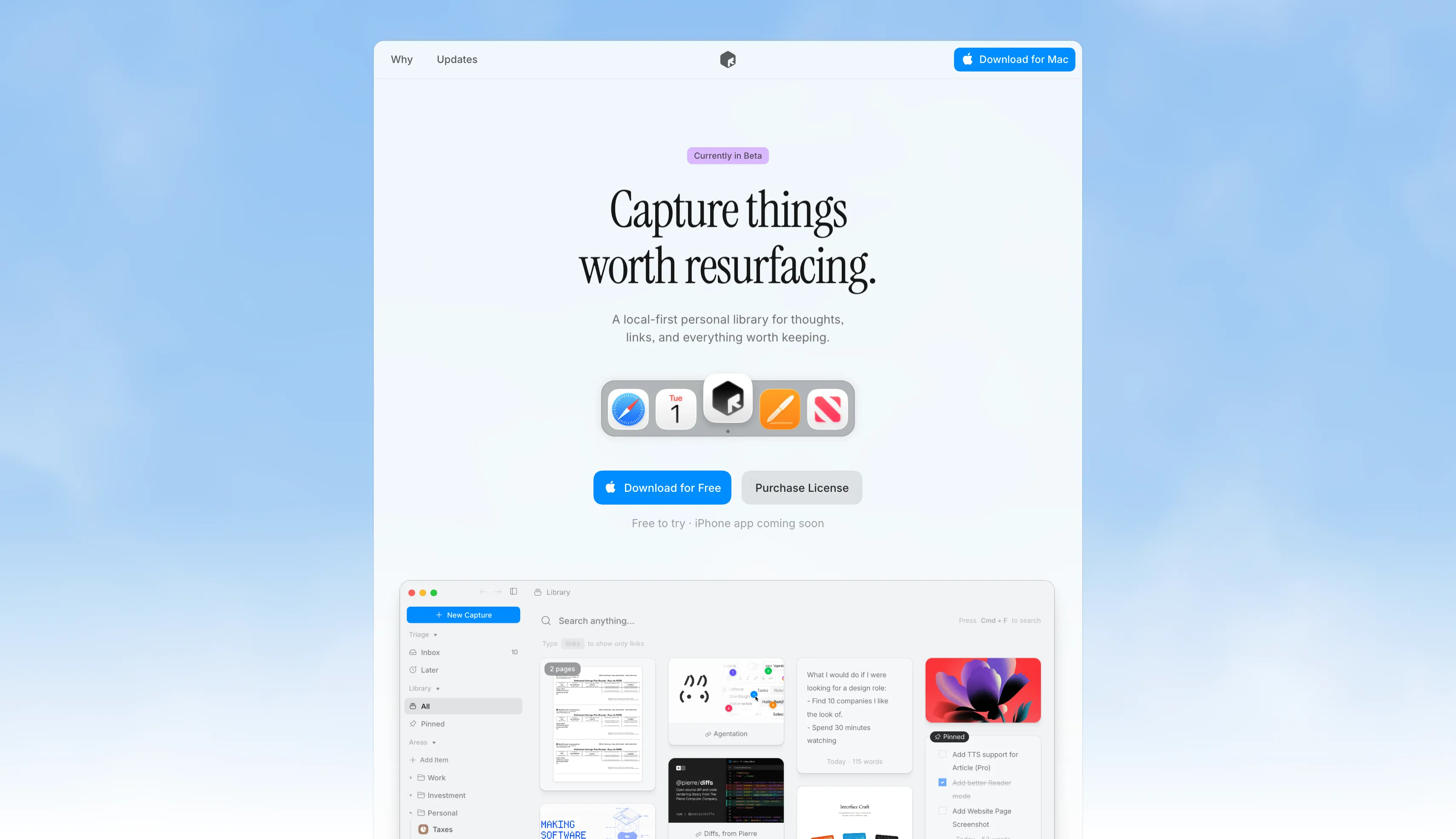 A personal library and quick capture tool for thoughts, ideas, links, visuals, and more.