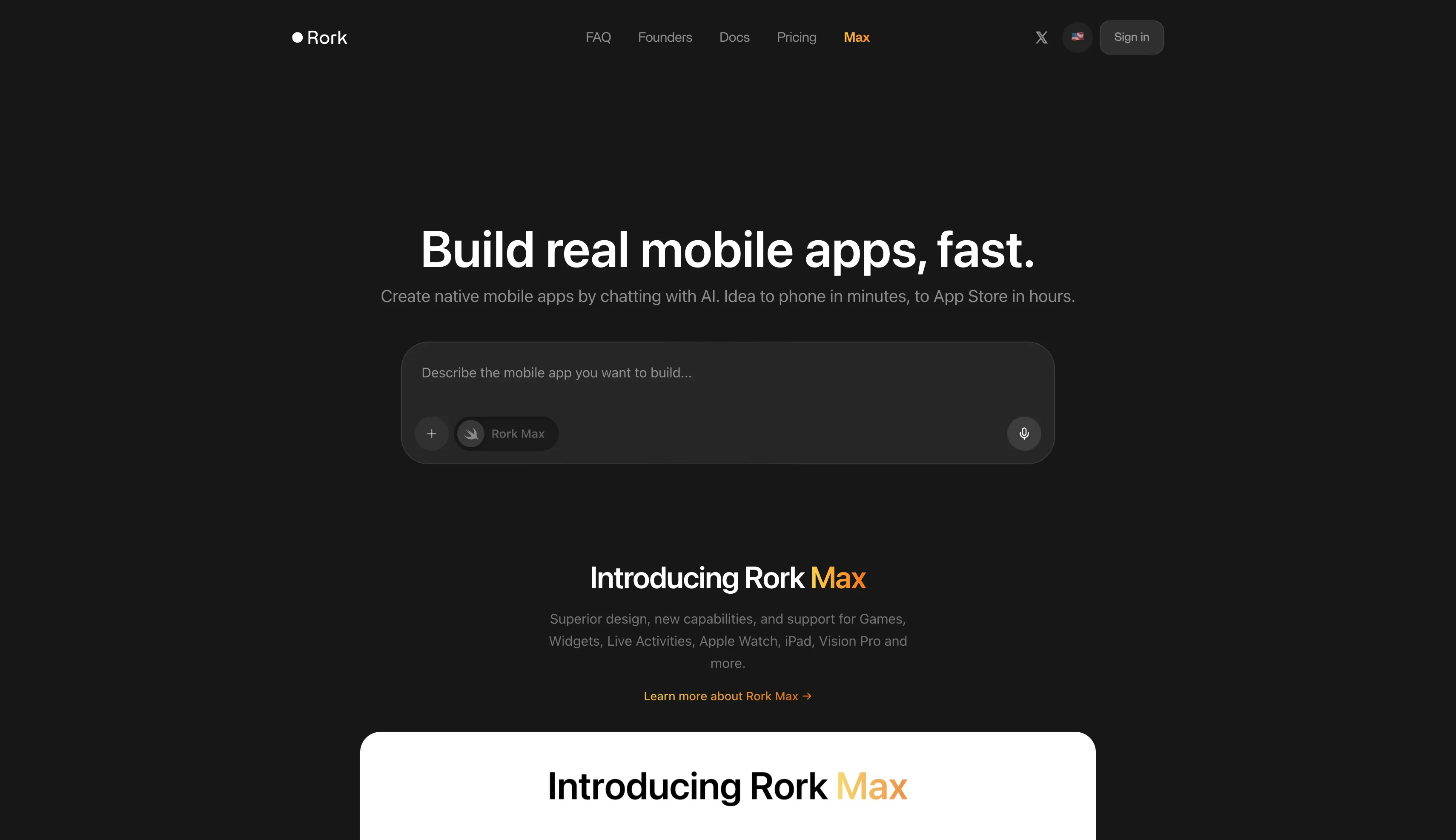 Rork builds complete, production-ready mobile apps from your description using AI and Expo (React Native)
