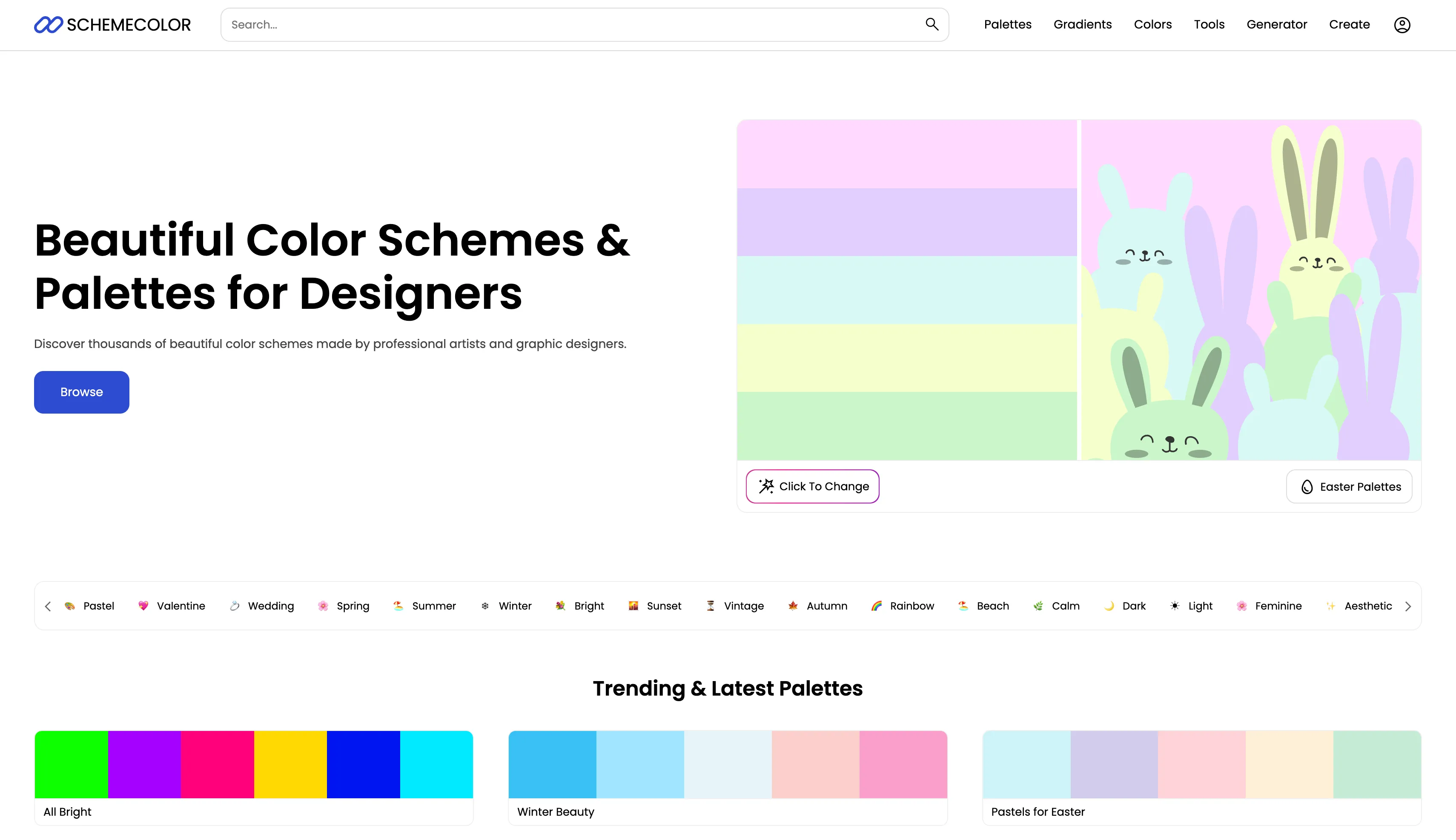 SchemeColor is a website that offers color schemes, palettes, and design inspiration for creative projects. It provides various color combinations and resources useful for designers, developers, and anyone seeking color ideas for their work.