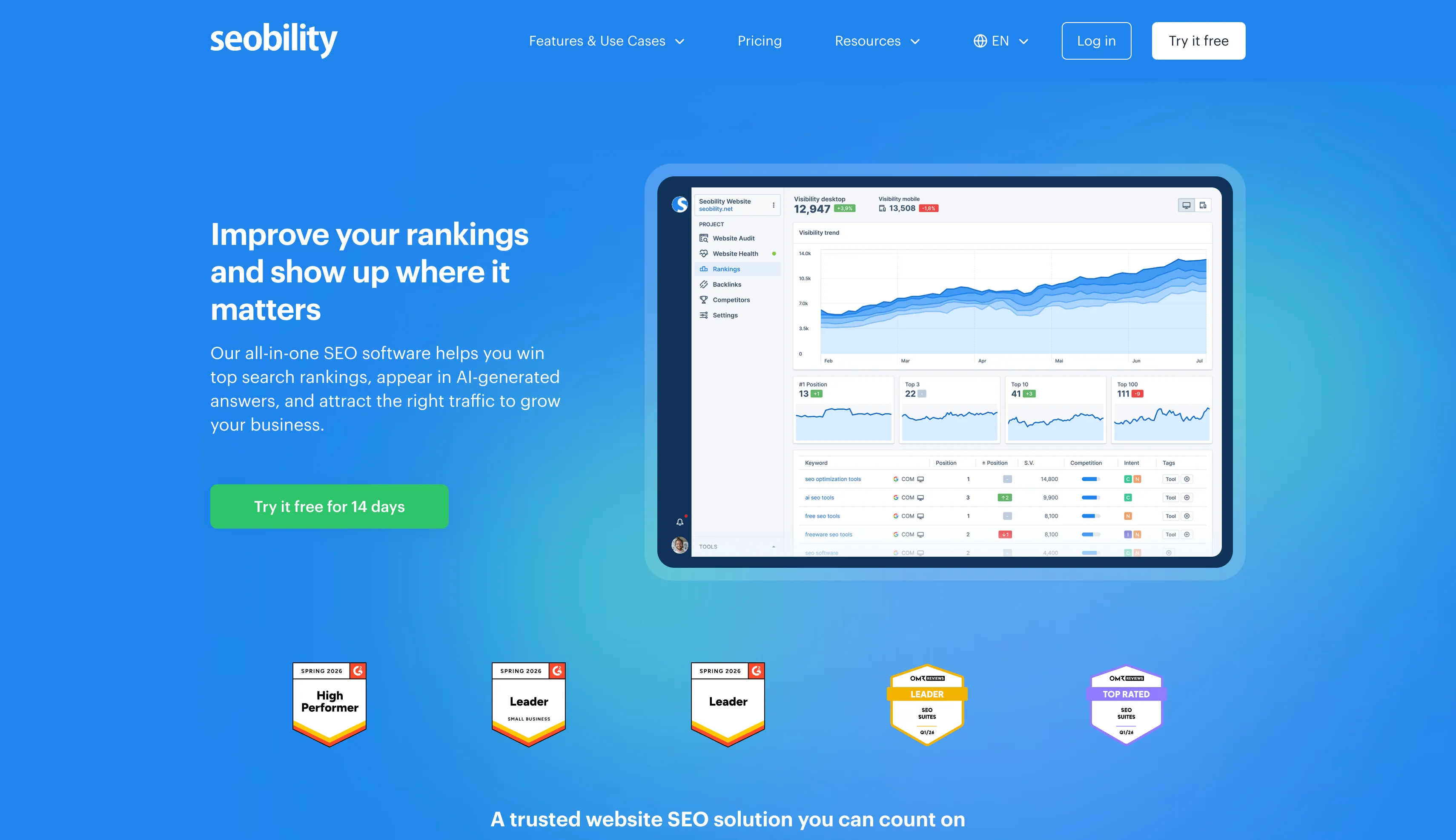 Improve your Google rankings and drive more visitors to your website with Seobility's All-in-One SEO platform. Top-rated ✓ Easy-to-use ✓ 14-day free trial ✓