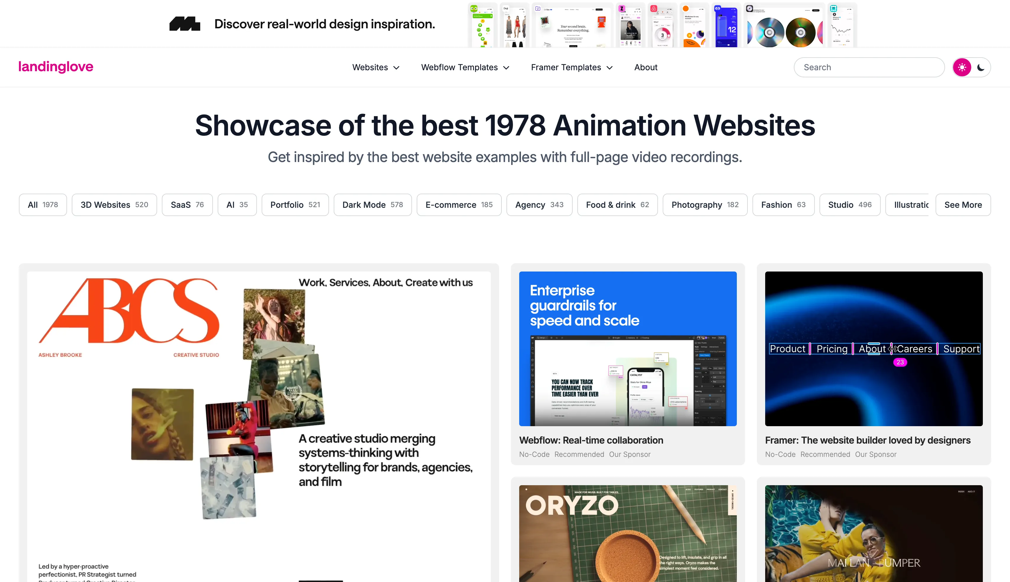Get inspired by an amazing collection of over 1978 animation website designs. With a full-page video recording showcasing the best designs out there.