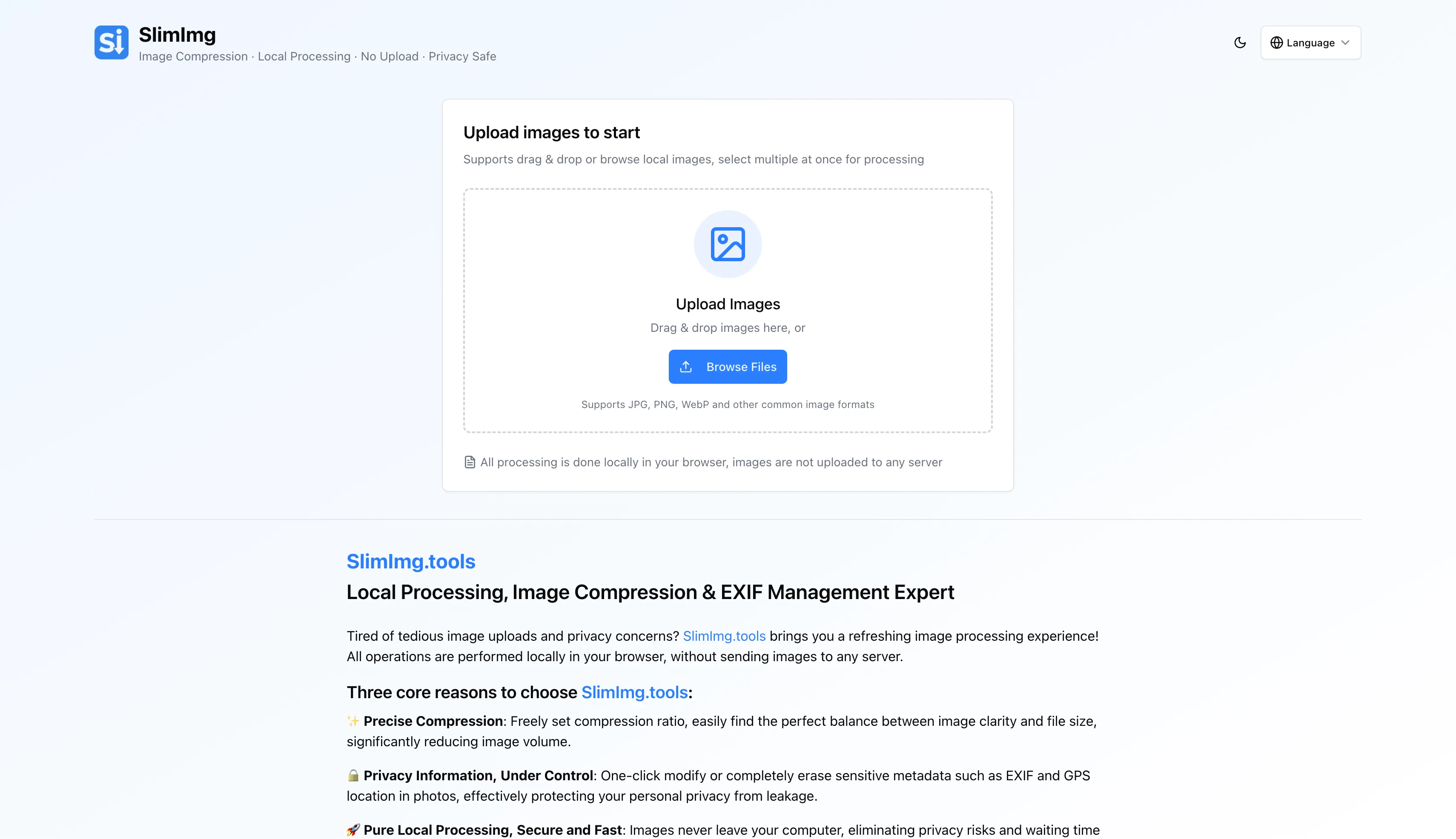 Compress JPG, PNG & WebP images locally in your browser. No uploads, privacy-safe, free image optimization with up to 90% size reduction.