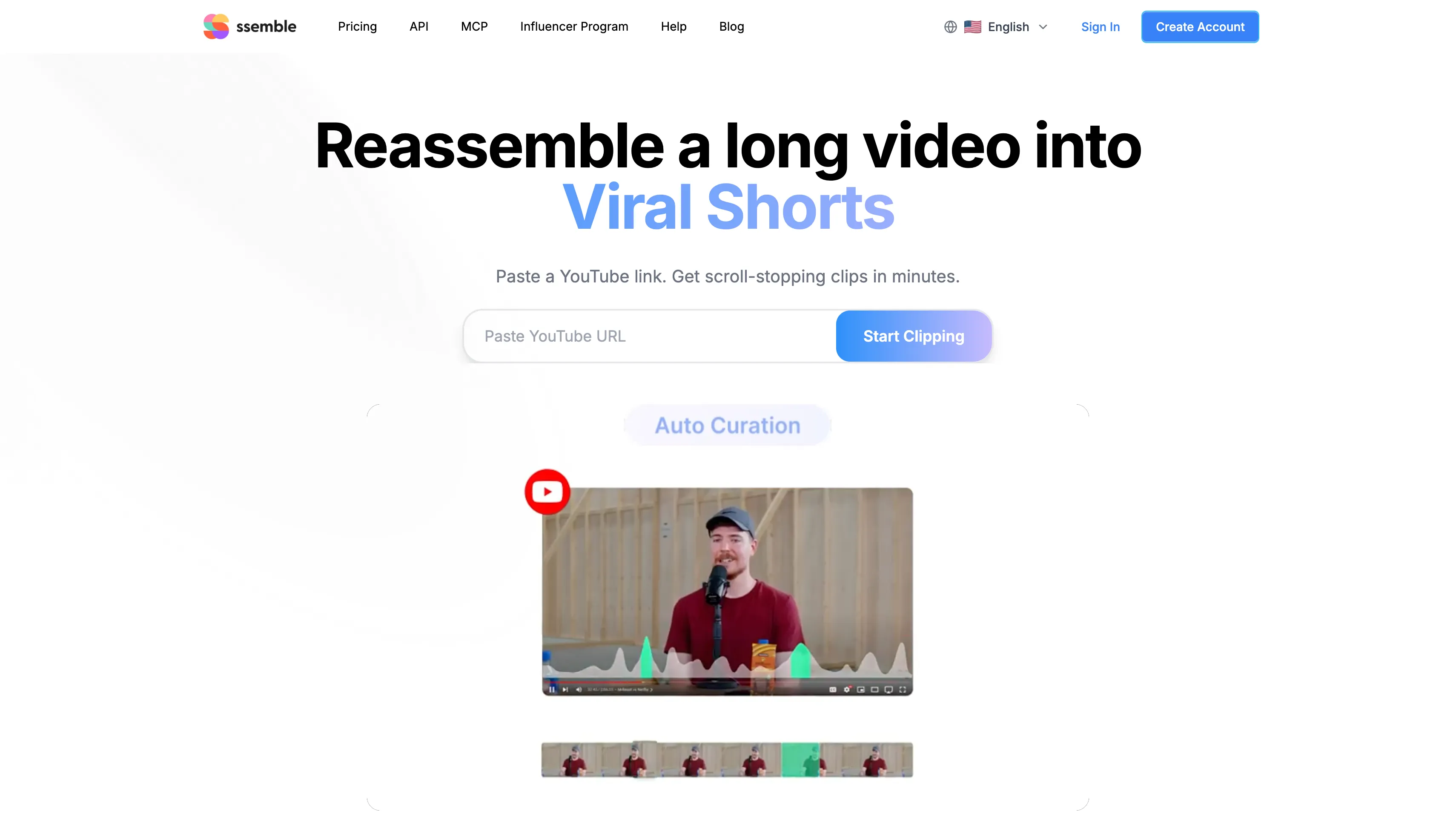 Make engaging shorts with Ssemble. It automatically clips and crops videos, adds captions, and enhances retention with B-roll, transitions, sound effects, and CTA overlays.