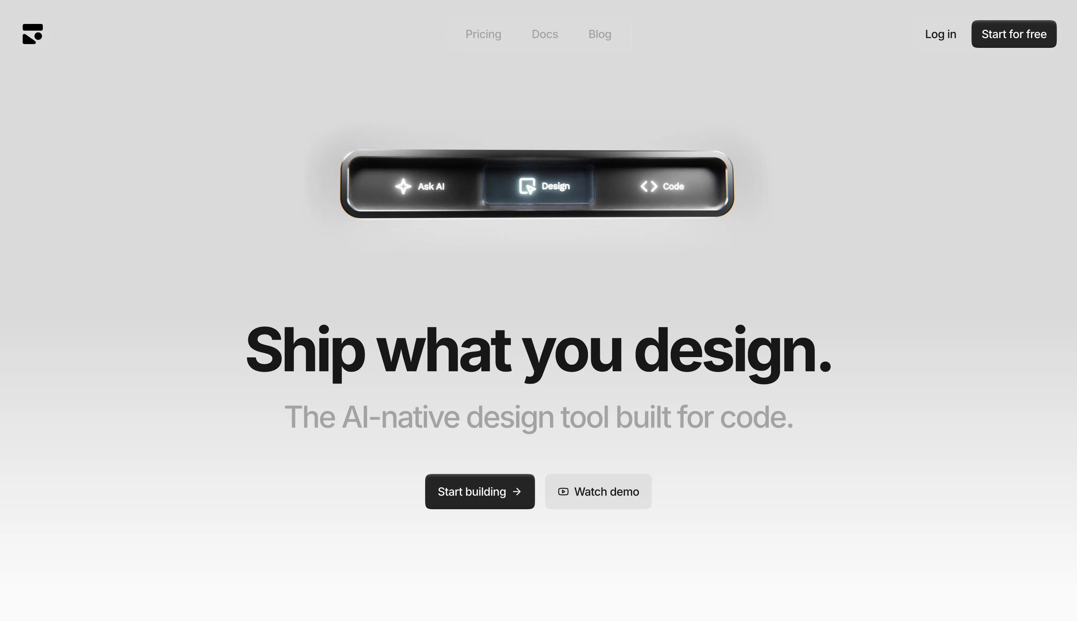 The AI-native design tool that ships code. Design with real components, connect your design system to AI agents, and ship production React & Tailwind CSS.
