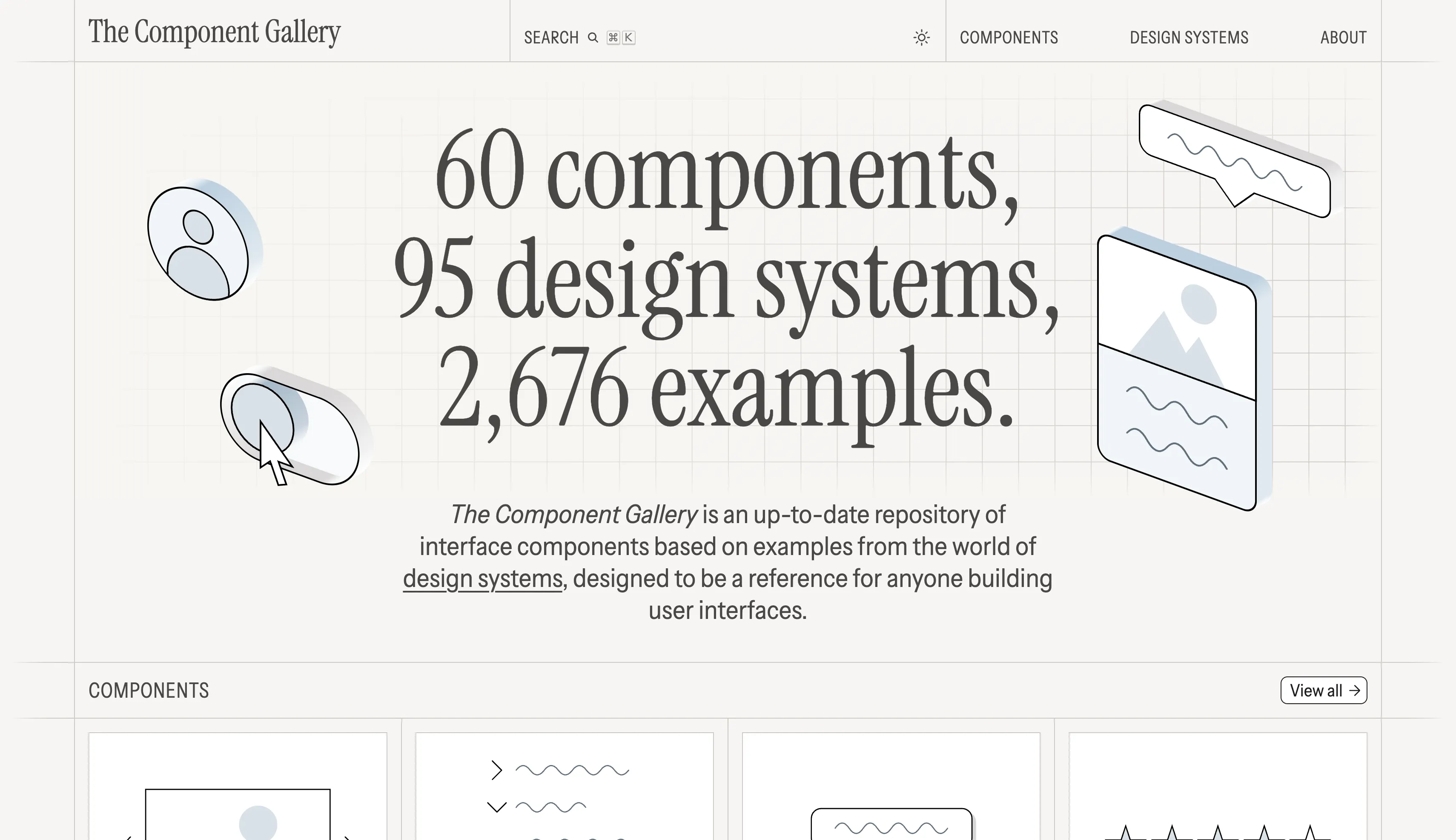 An up-to-date repository of interface components based on examples from the world of design systems, designed to be a reference for anyone building user interfaces.